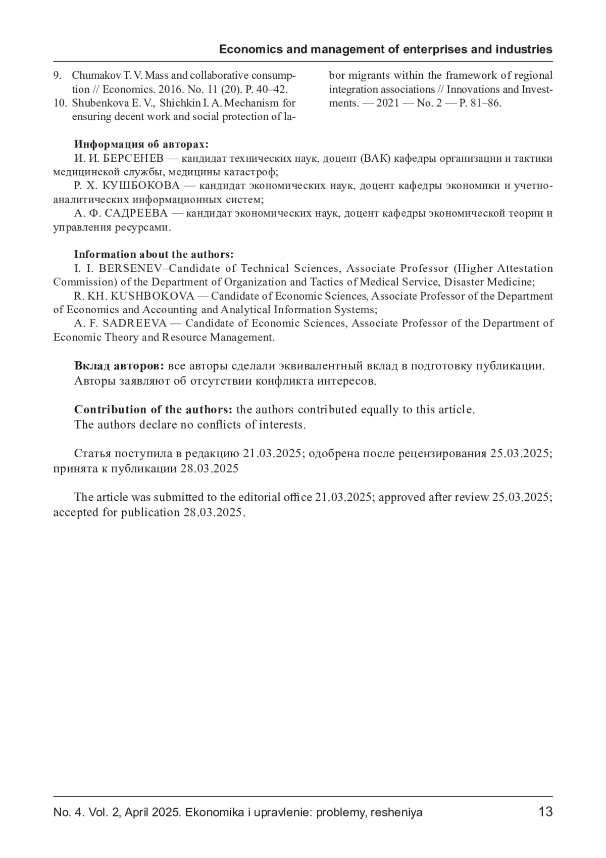 10. Шубенкова Е.В., Шичкин И. А. Механизм обеспечения достойного труда и социальной защиты трудовых мигрантов в рамках региональных интеграционных объединений // Инновации и инвестиции. - 2021 - № 2 - С. 81-86. EDN: PMNMIK