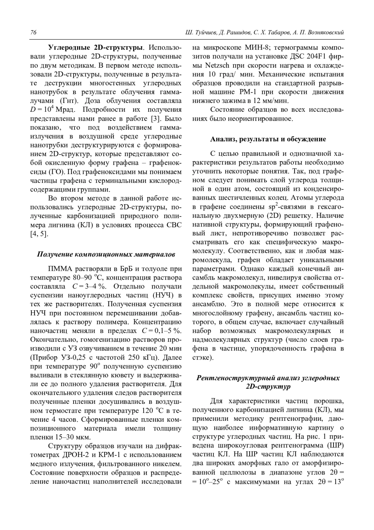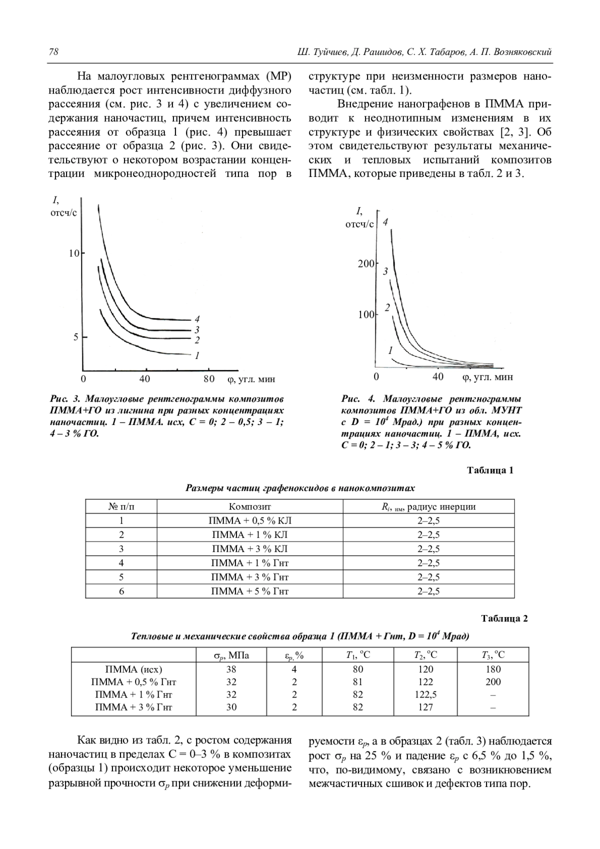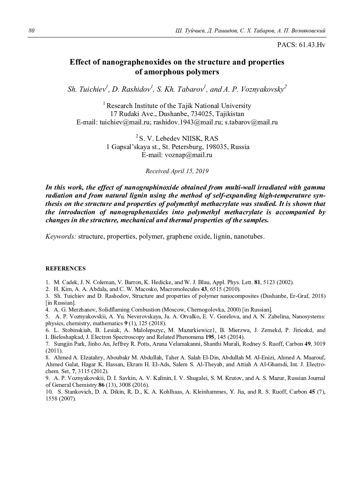 Туйчиев Ш., Рашидов Д., Табаров С. Х., Возняковский А. П. Влияние нанографеноксидов на структуру и свойства аморфных полимеров 75