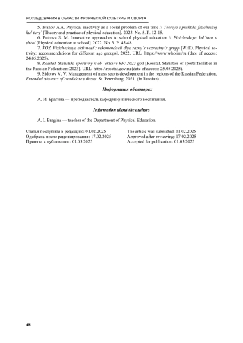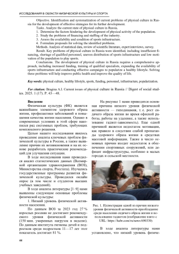 БРАГИНА А. И. АКТУАЛЬНЫЕ ПРОБЛЕМЫ ФИЗИЧЕСКОЙ КУЛЬТУРЫ В РОССИИ // ДАЙДЖЕСТ СОЦИАЛЬНЫХ ИССЛЕДОВАНИЙ. 2025. № 1 (17)