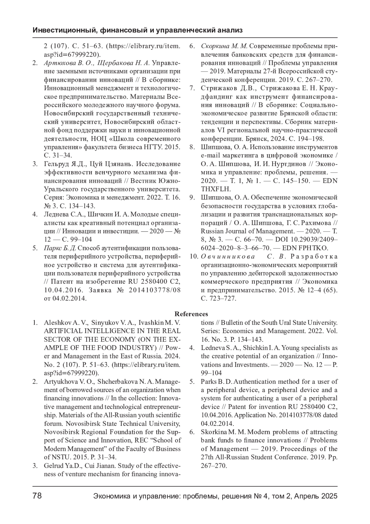 6. Скоркина М. М. Современные проблемы привлечения банковских средств для финансирования инноваций // Проблемы управления - 2019. Материалы 27-й Всероссийской студенческой конференции. 2019. С. 267-270. EDN: JDSJMF