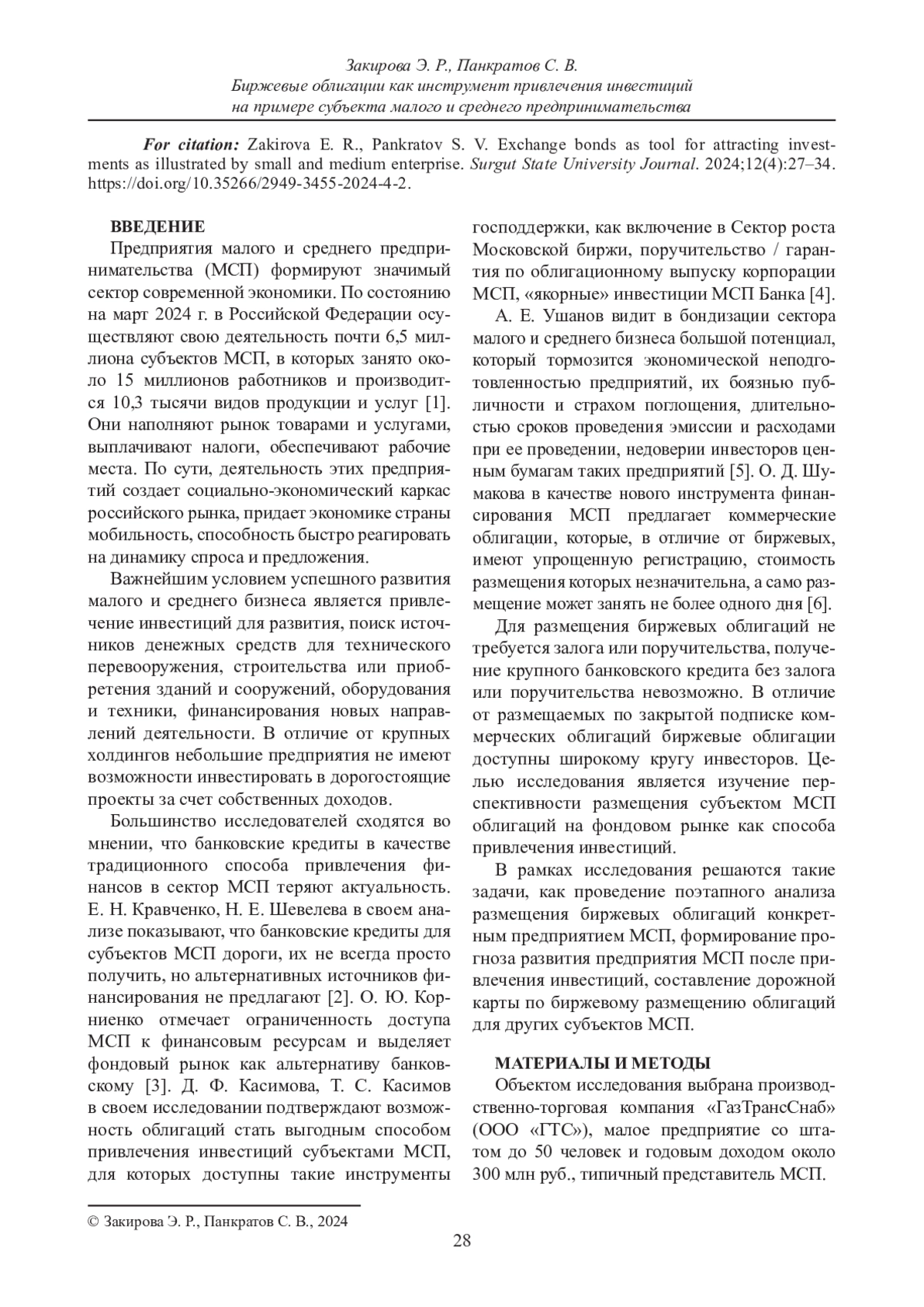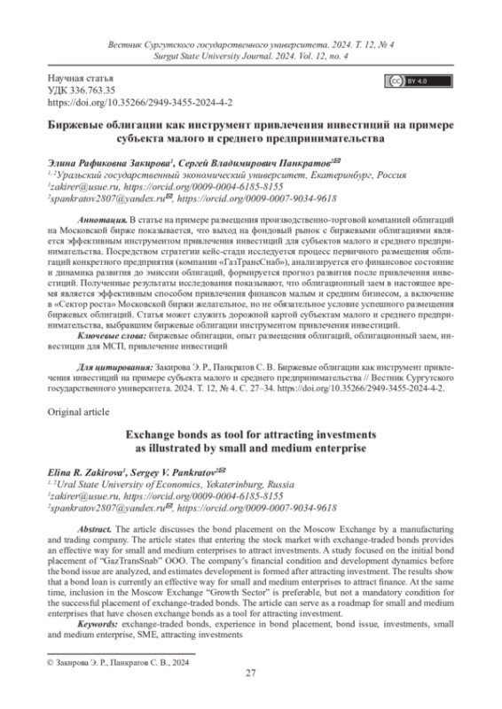 В статье на примере размещения производственно-торговой компанией облигаций на Московской бирже показывается, что выход на фондовый рынок с биржевыми облигациями является эффективным инструментом привлечения инвестиций для субъектов малого и среднего предпринимательства. Посредством стратегии кейс-стади исследуется процесс первичного размещения облигаций конкретного предприятия (компании «ГазТрансСнаб»), анализируется его финансовое состояние и динамика развития до эмиссии облигаций, формируется прогноз развития после привлечения инвестиций. Полученные результаты исследования показывают, что облигационный заем в настоящее время является эффективным способом привлечения финансов малым и средним бизнесом, а включение в «Сектор роста» Московской биржи желательное, но не обязательное условие успешного размещения биржевых облигаций. Статья может служить дорожной картой субъектам малого и среднего предпринимательства, выбравшим биржевые облигации инструментом привлечения инвестиций.