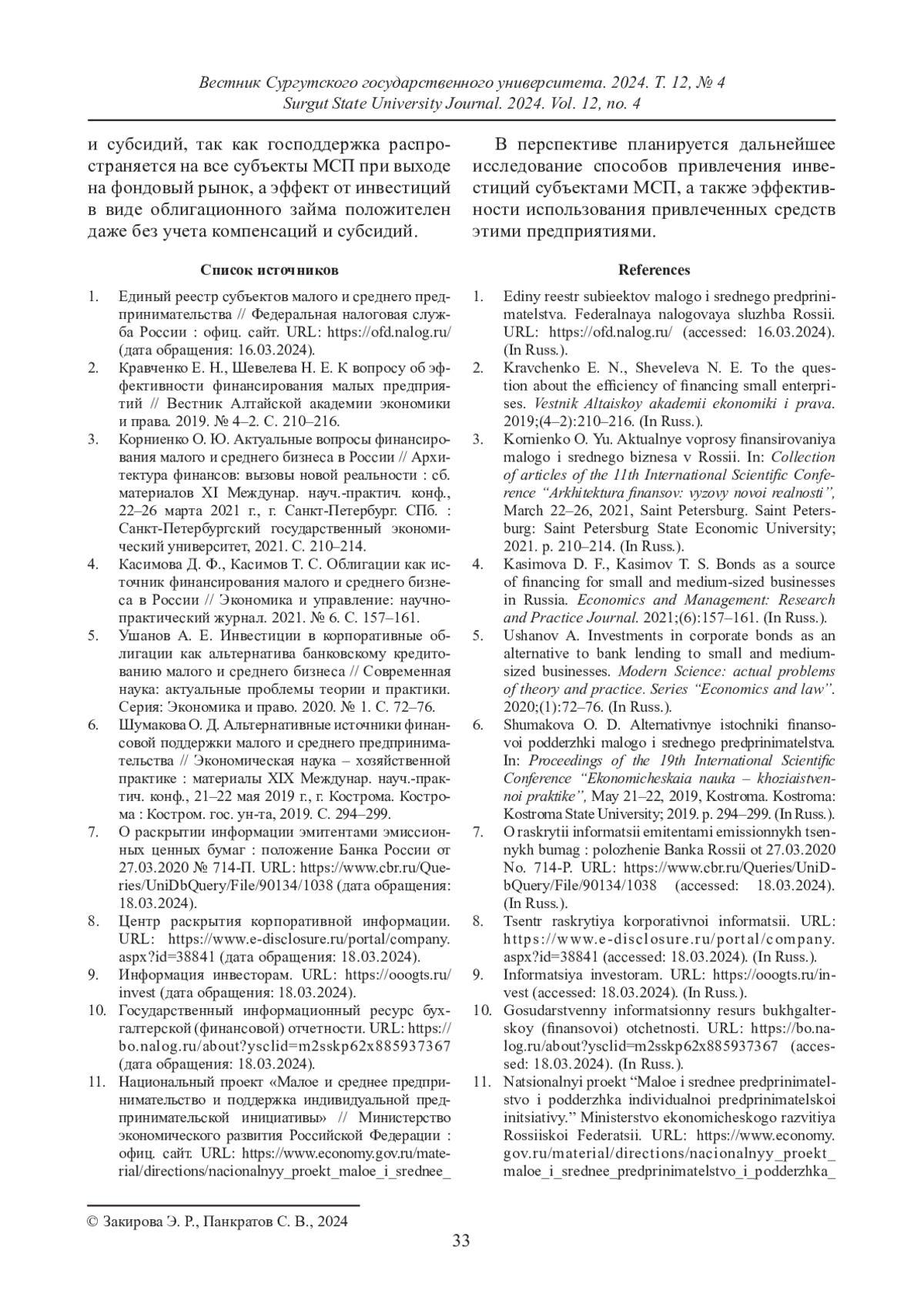 4. Касимова Д. Ф., Касимов Т. С. Облигации как источник финансирования малого и среднего бизнеса в России // Экономика и управление: научно-практический журнал. 2021. № 6. С. 157-161.