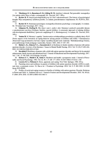 19. Kavaliotis P. Resilience of parents with a child with autism spectrum disorders and factors for its potential enhancement: family income and educational level // Journal of Educational and Developmental Psychology. 2017. Vol. 7. № 1. P. 188. DOI: 10.5539/jedp.v7n1p188