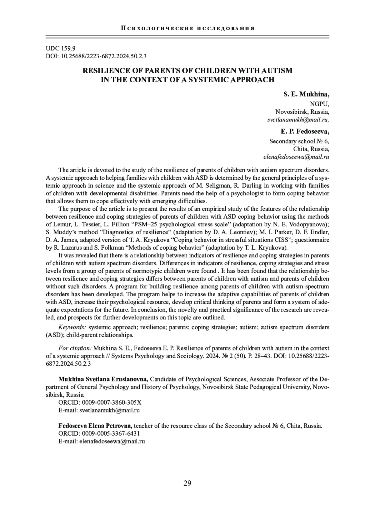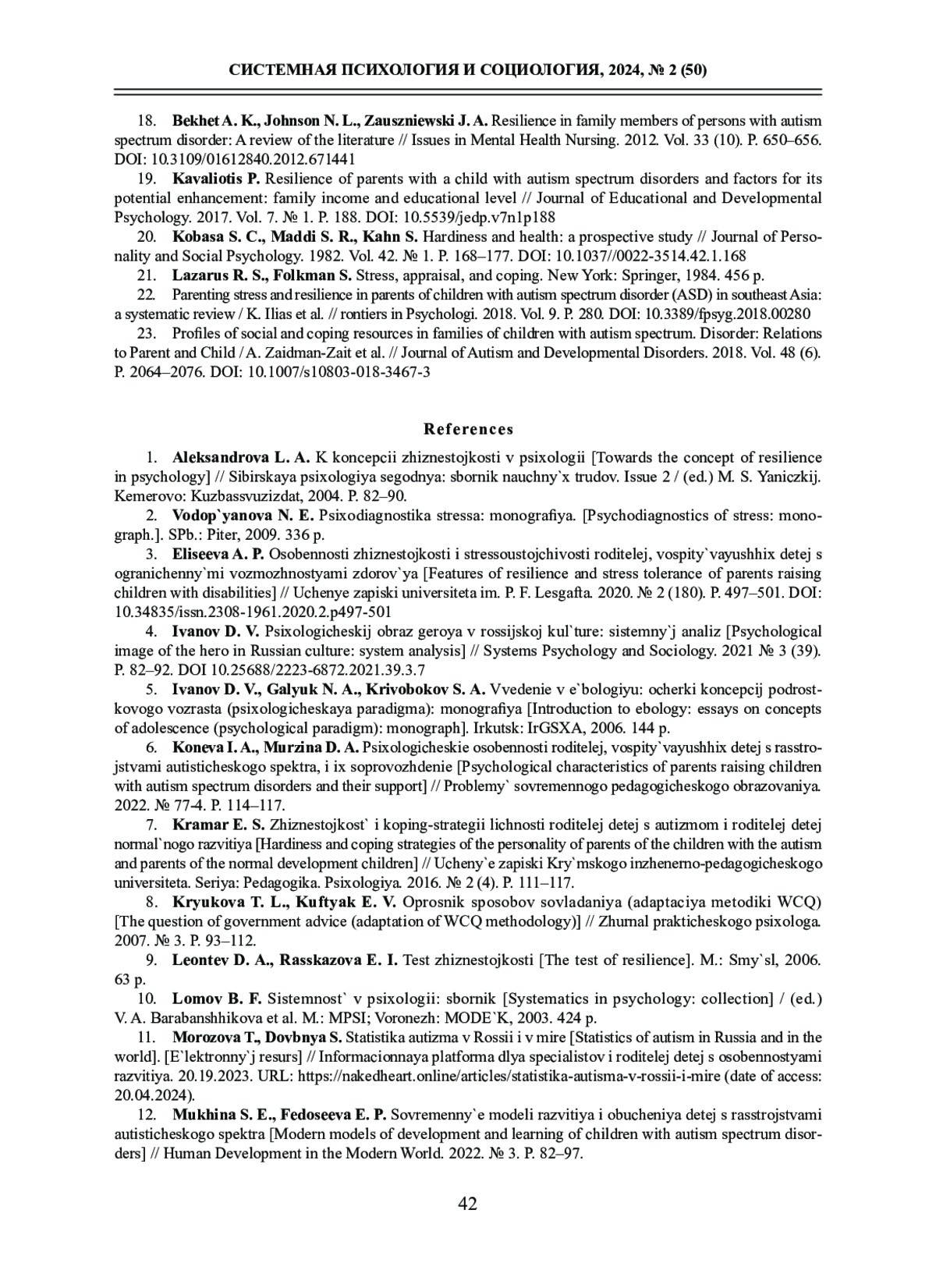 23. Profiles of social and coping resources in families of children with autism spectrum. Disorder: Relations to Parent and Child / A. Zaidman-Zait et al. // Journal of Autism and Developmental Disorders. 2018. Vol. 48 (6). P. 2064-2076. DOI: 10.1007/s10803-018-3467-3 EDN: AGUSDM