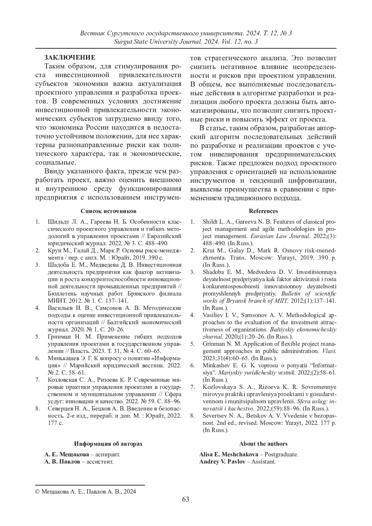 5. Гринман Н. М. Применение гибких подходов управления проектами в государственном управлении // Власть. 2023. Т. 31, № 4. С. 60-65.