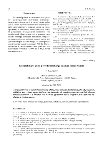 V. V. Loginov Researching of pulse-periodic discharge in alkali metals vapors 24