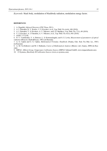 V. S. Kovshov and A. I. Patrashin The mathematical model of blackbody radiation modulation energy factor 47