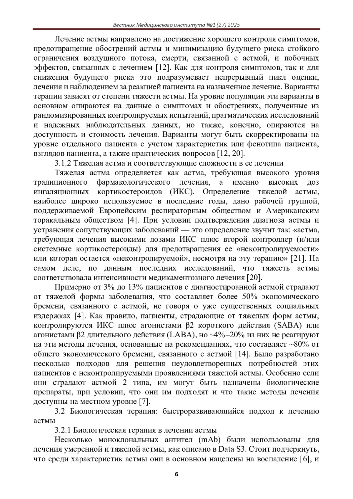 13. Черняк Б.А., Воржева И.И. // Практическая медицина. 2009. № 3 (35). - C. 55-58.14. N. Hambly and P. Nair, “Monoclonal Antibodies for the Treatment of Refractory Asthma”, Current Opinion in Pulmonary Medicine 20, no. 1 (2014): 87-94.
