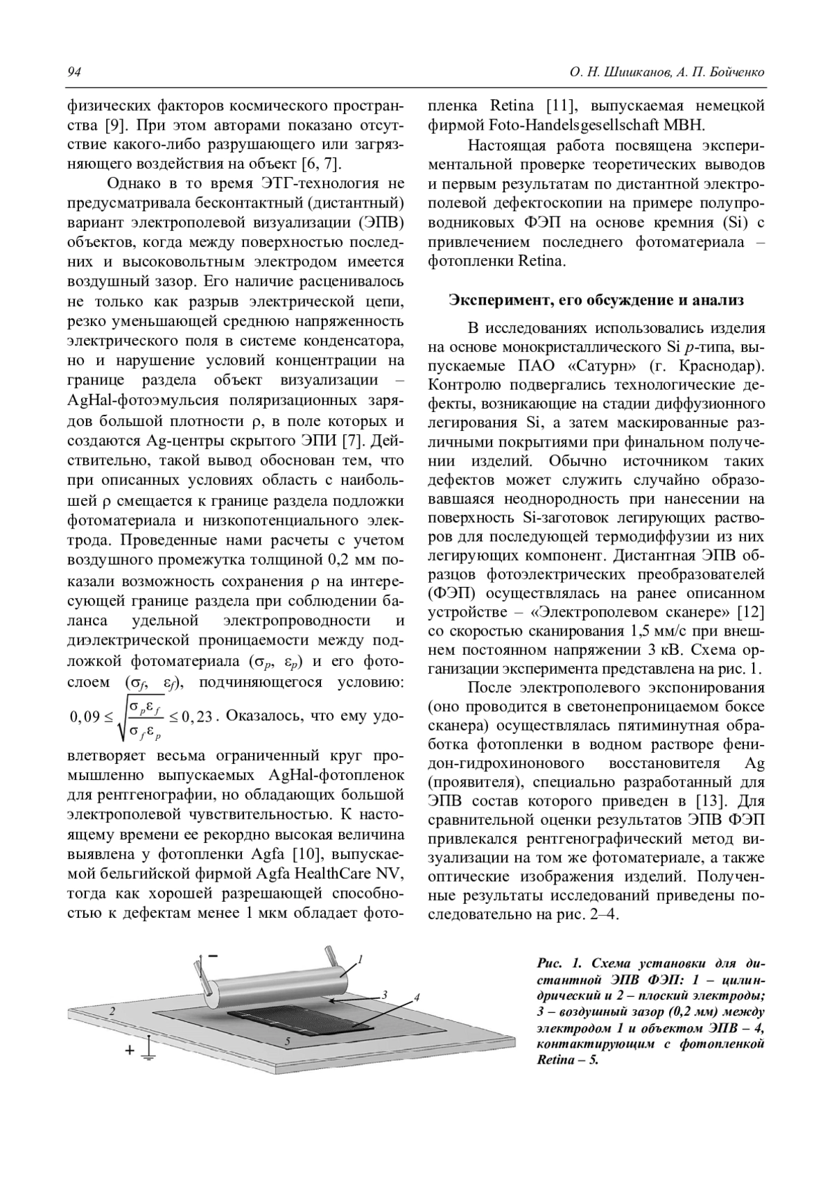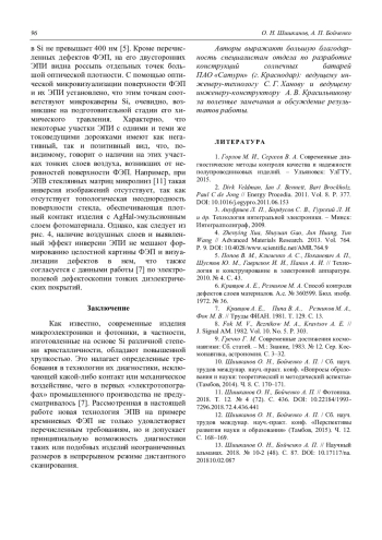 Шишканов О. Н., Бойченко А. П. Электрополевая дефектоскопия полупроводниковых фотопреобразователей в режиме бесконтактного сканирования 93