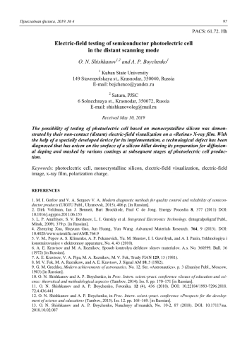 O. N. Shishkanov and A. P. Boychenko Electric-field testing of semiconductor photoelectric cell in the distant scanning mode 93