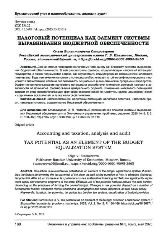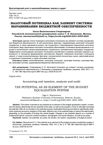 6. Пивоваров А. В. Особенности налогового потенциала как элемента системы выравнивания бюджетной обеспеченности // Российский экономический интернет-журнал. - 2024. - № 2. EDN: MQKAOG