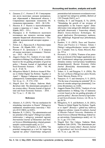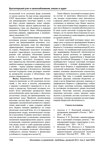 2. Баташев Р. В. Налоговое администрирование и налоговый потенциал региона // Международный журнал гуманитарных и естественных наук. - 2021. - № 12-1. EDN: DOUVMS
