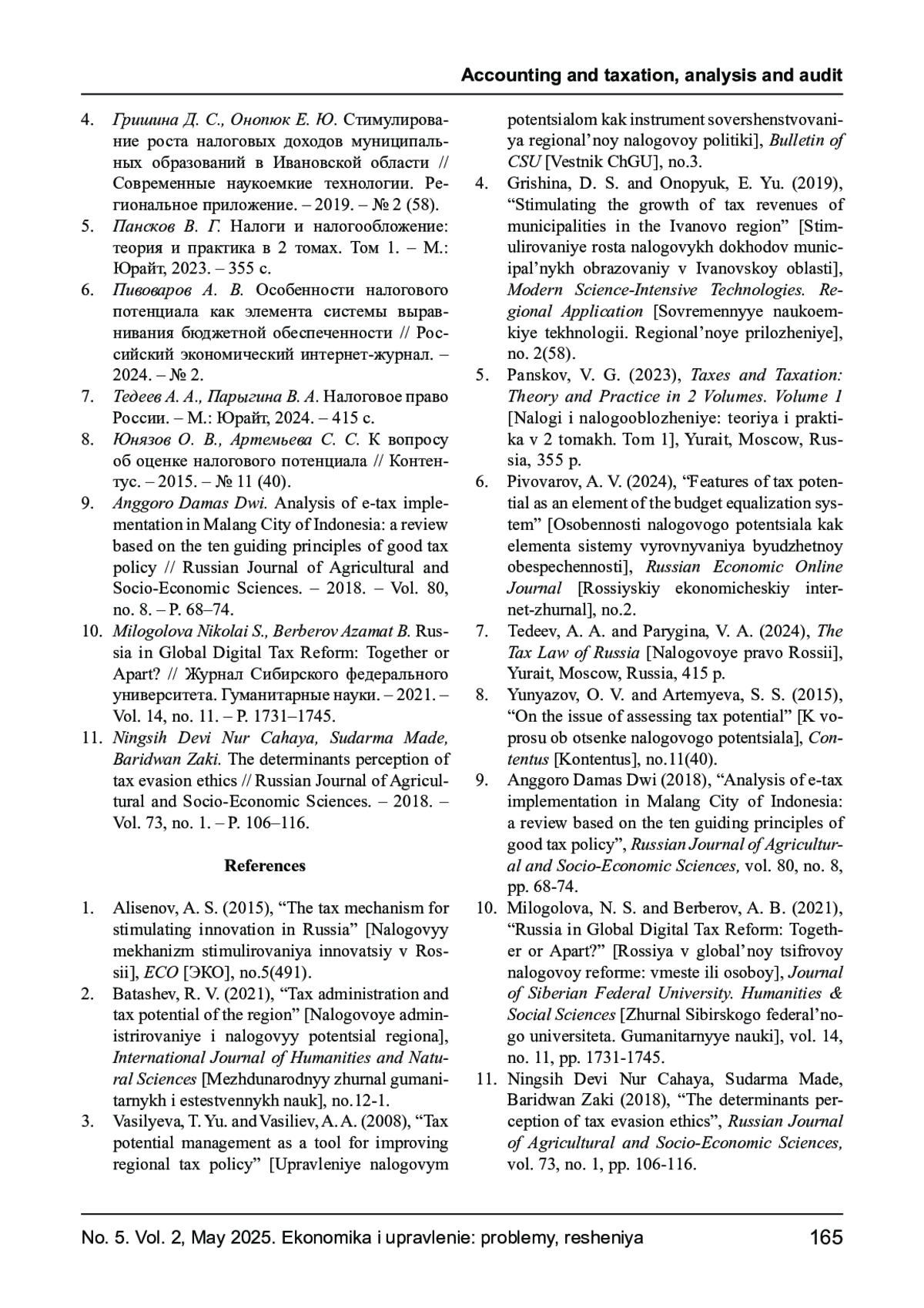 9. Anggoro Damas Dwi. Analysis of e-tax implementation in Malang City of Indonesia: a review based on the ten guiding principles of good tax policy // Russian Journal of Agricultural and Socio-Economic Sciences. - 2018. - Vol. 80, no. 8. - P. 68-74.