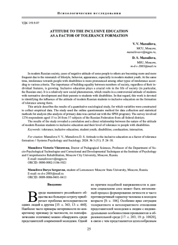 7. Мануйлова В. В. Готовность административно-управленческих и педагогических команд профессиональных образовательных организаций к реализации инклюзивных процессов // Коррекционная педагогика: теория и практика. 2023. № 3 (97). С. 23-27. https://www. DOI: 10.52252/26867222_2023_3_23 EDN: DAVMOI