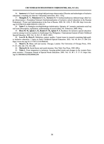 17. Шенгальц Е. В., Максимова С. Г., Суртаева О. В. Институционализация инклюзивного школьного образования в Российской Федерации // Власть и управления на Востоке России. 2020. № 3 (92). С. 202-204. http://www. DOI: 10.22394/1818-4049-2020-92-3-202-211