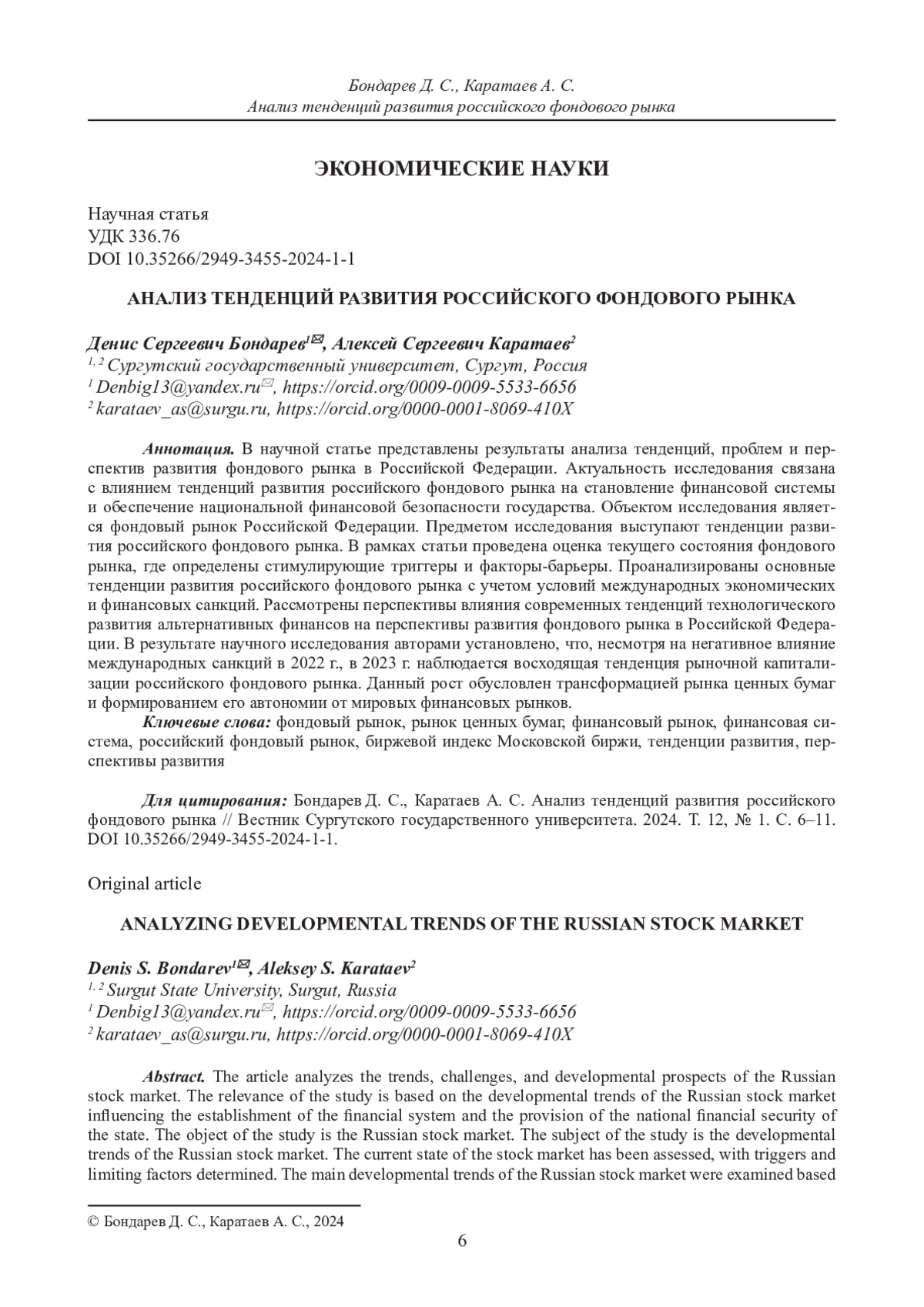 5. Александрова Ж. П., Акопьянц А. А., Подиева Е. А. и др. Фондовый рынок Российской Федерации: проблемы и перспективы развития // Первый экономический журнал. 2023. № 5. С. 127-133. https://doi.org/10.58551/20728115_2023_5_127.