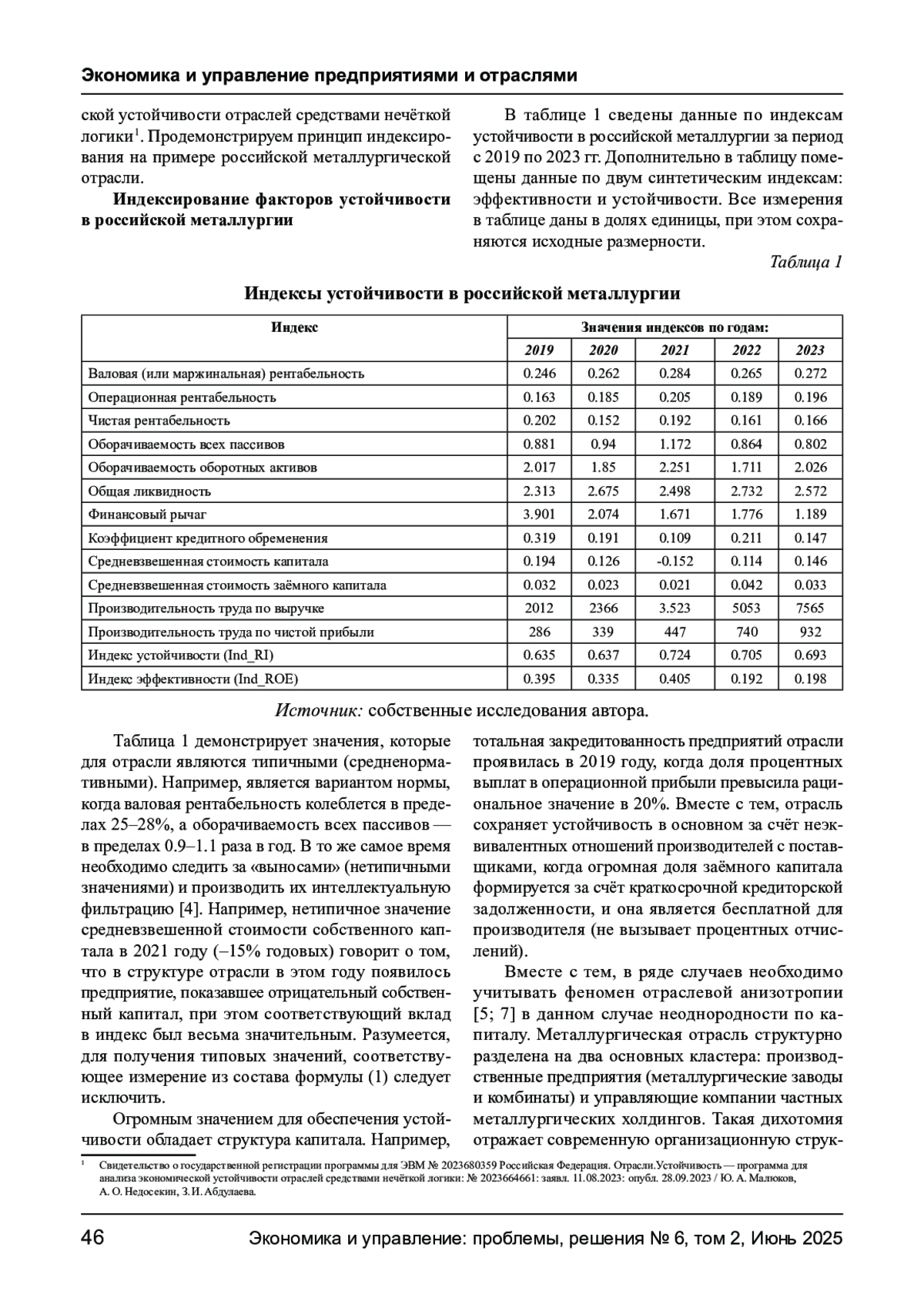 2. Малюков Ю. А., Недосекин А. О., Абдулаева З. И. Оценка экономической устойчивости публичных промышленных компаний. - Санкт- Петербург: ФГАОУ ВО “Санкт- Петербургский политехнический университет Петра Великого”, 2023. - 99 с. ISBN: 978-5-7422-8091-0 EDN: SWSKRC