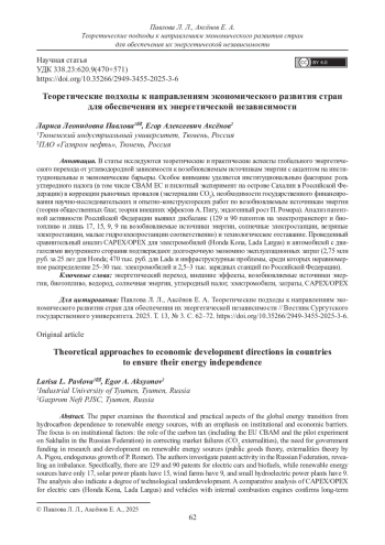 Статья: Теоретические подходы к направлениям экономического развития стран для обеспечения их энергетической независимости (2025)