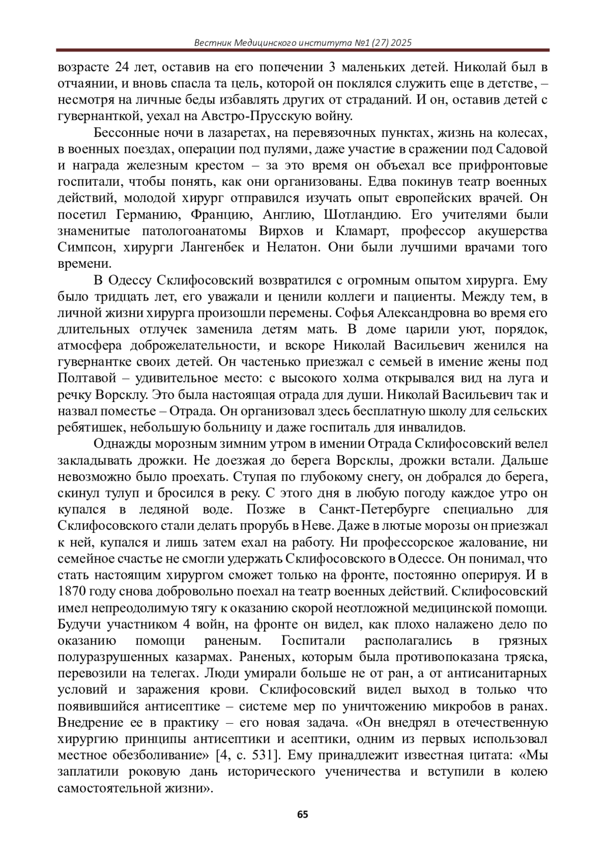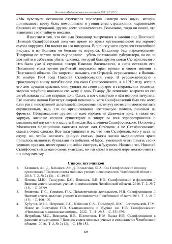 3. Решетова, П.С., Семенов, П.А. Педагогическая деятельность Н.В. Склифосовского // Вестник совета молодых ученых и специалистов Челябинской области.2016. Т. 2, № 2 (13). - С. 100-102. EDN: WCKCQR