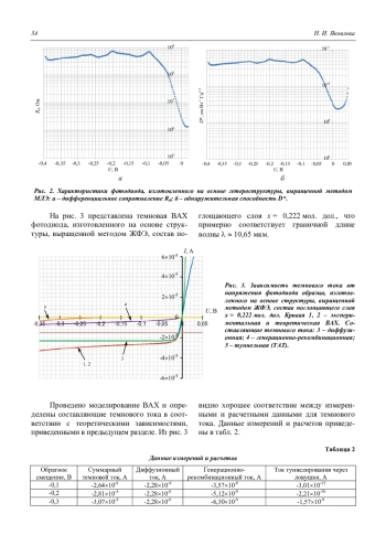 Главным фактором, который влияет на выходные характеристики, является темновой ток фотодиодов, который должен быть минимальным, чтобы снизить шумы и обеспечить высокий уровень фотоэлектрических параметров. Для выявления доминирующих причин генерации-рекомбинации в фотодиодах на основе тройного соединения кадмий-ртуть-теллур (КРТ) в заданном диапазоне напряжений разработана модель расчета темновых токов, обусловленных фундаментальными и иными токовыми механизмами. Определены составляющие темнового тока фотодиодов, изготовленных в гетероструктурах КРТ, выращенных методами молекулярно-лучевой (МЛЭ) и жидкофазной (ЖФЭ) эпитаксии, в диапазоне обратных напряжений смещения от 0 до 40 мВ. В диапазоне от 0 до 20 мВ обратного напряжения смещения характеристики ограничены диффузионной составляющей. Возрастание токов генерациирекомбинации Шокли-Рида-Холла (ШРХ) и туннелирования через уровни ловушек в запрещенной зоне наблюдается при напряжении обратного смещения более 30 мВ.