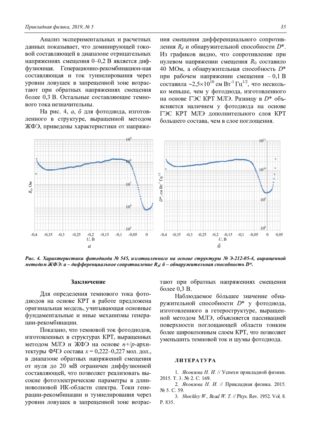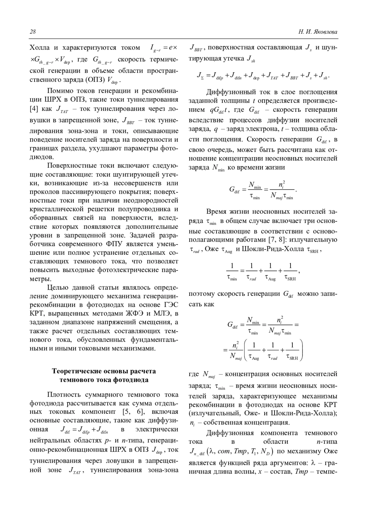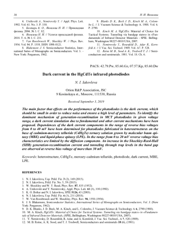 ЯКОВЛЕВА Н. И. ИССЛЕДОВАНИЕ ТЕМНОВЫХ ТОКОВ ФОТОДИОДОВ НА ОСНОВЕ ГЕТЕРОСТРУКТУР КРТ // ПРИКЛАДНАЯ ФИЗИКА. 2019. №5