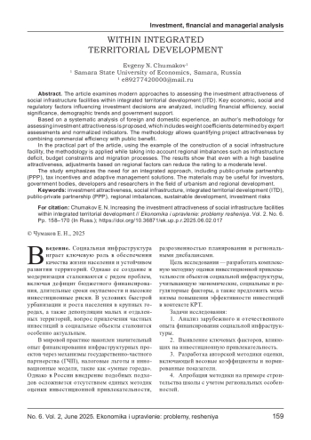 9. Медяник Ю. В., Шагиахметова Э. И. Инвестиционная привлекательность строительства объектов социальной инфраструктуры в регионах [Электронный ресурс] // Российская политика и публичная экономия. - 2022. - № 8(142). - URL: https://cyberleninka.ru/article/n/investitsionnaya-privlekatelnost-stroitelstva-obektov-sotsialnoy-infrastruktury-v-regionah (дата обращения: 16.05.2025). EDN: ZHZPDW