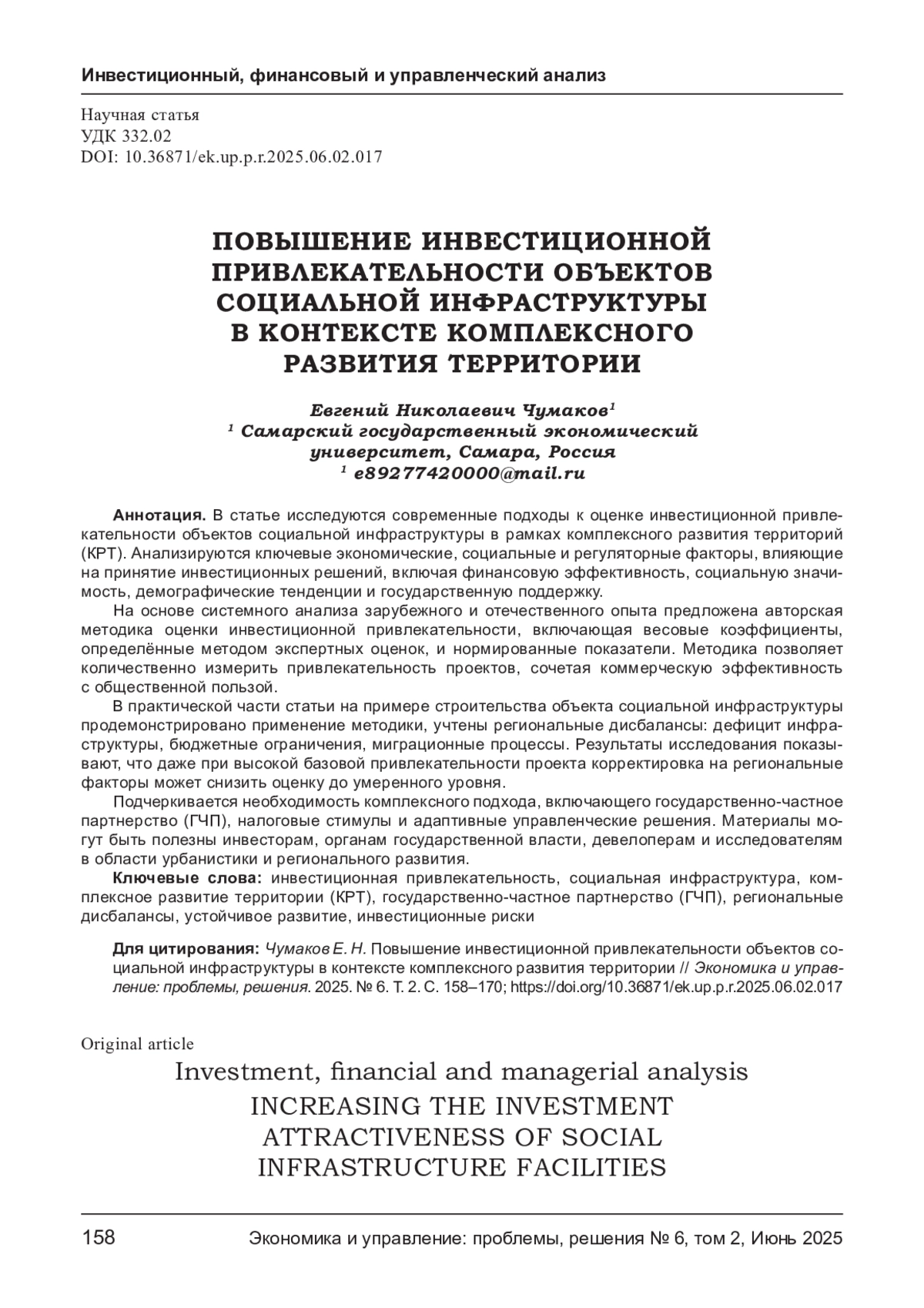 8. Скидан А. А. Повышение инвестиционной привлекательности социальных объектов [Электронный ресурс] // Московский экономический журнал. - 2022. - № 2. - URL: https://cyberleninka.ru/article/n/povyshenie-investitsionnoy-privlekatelnosti-sotsialnyhobektov (дата обращения: 17.05.2025). EDN: RQKUHQ