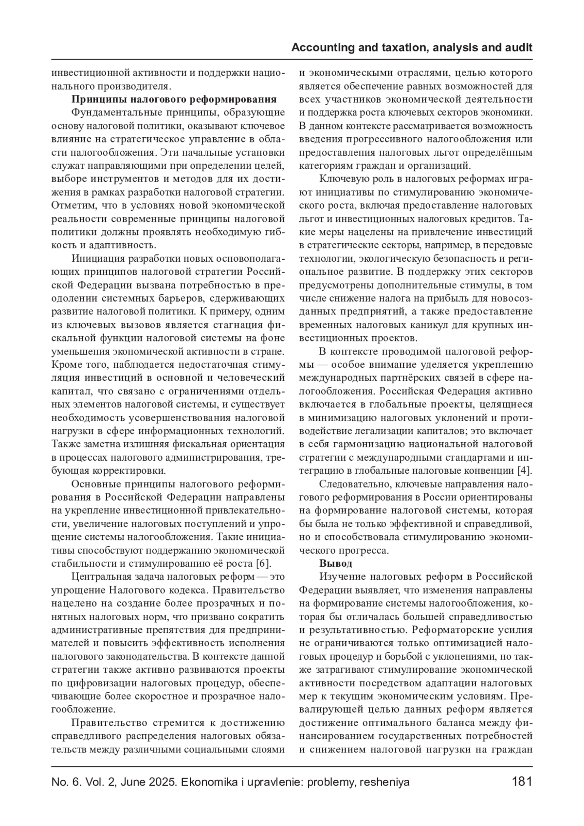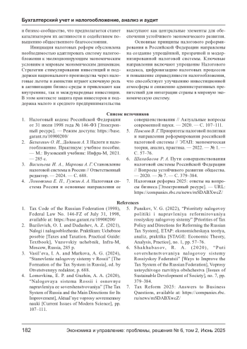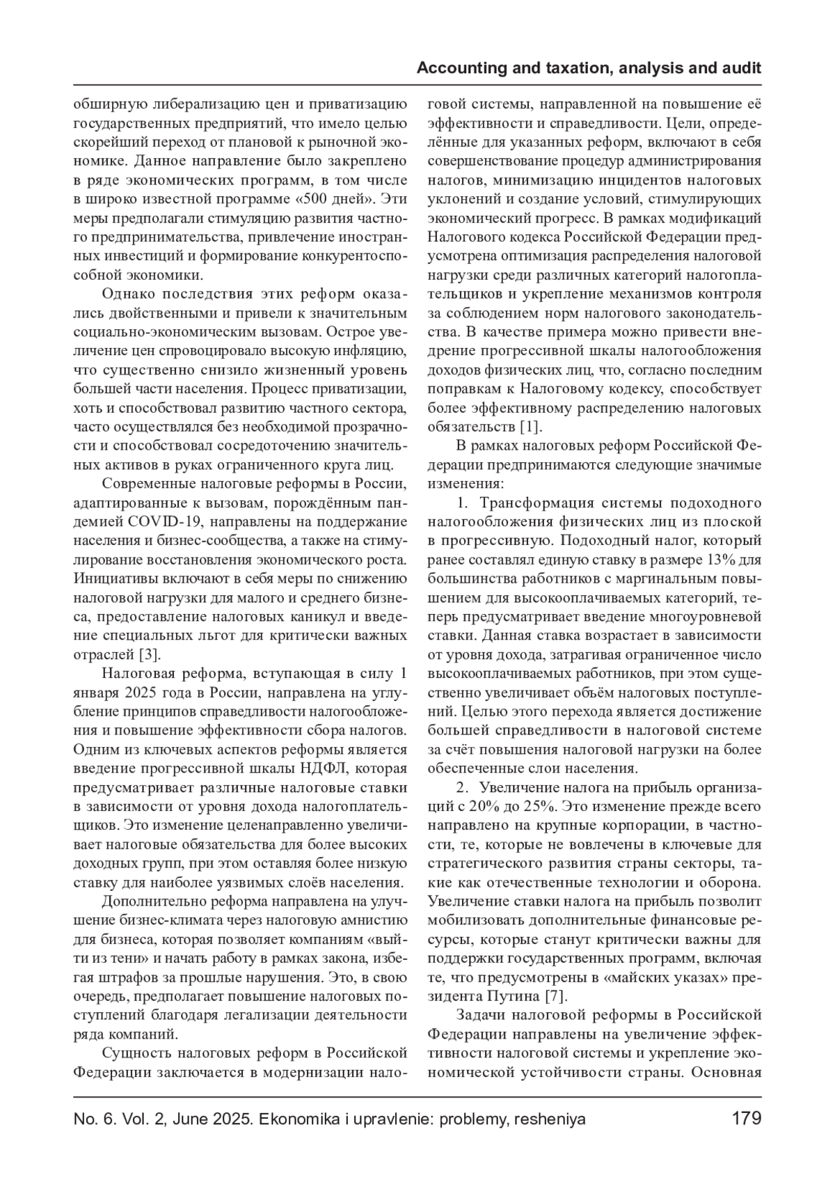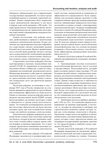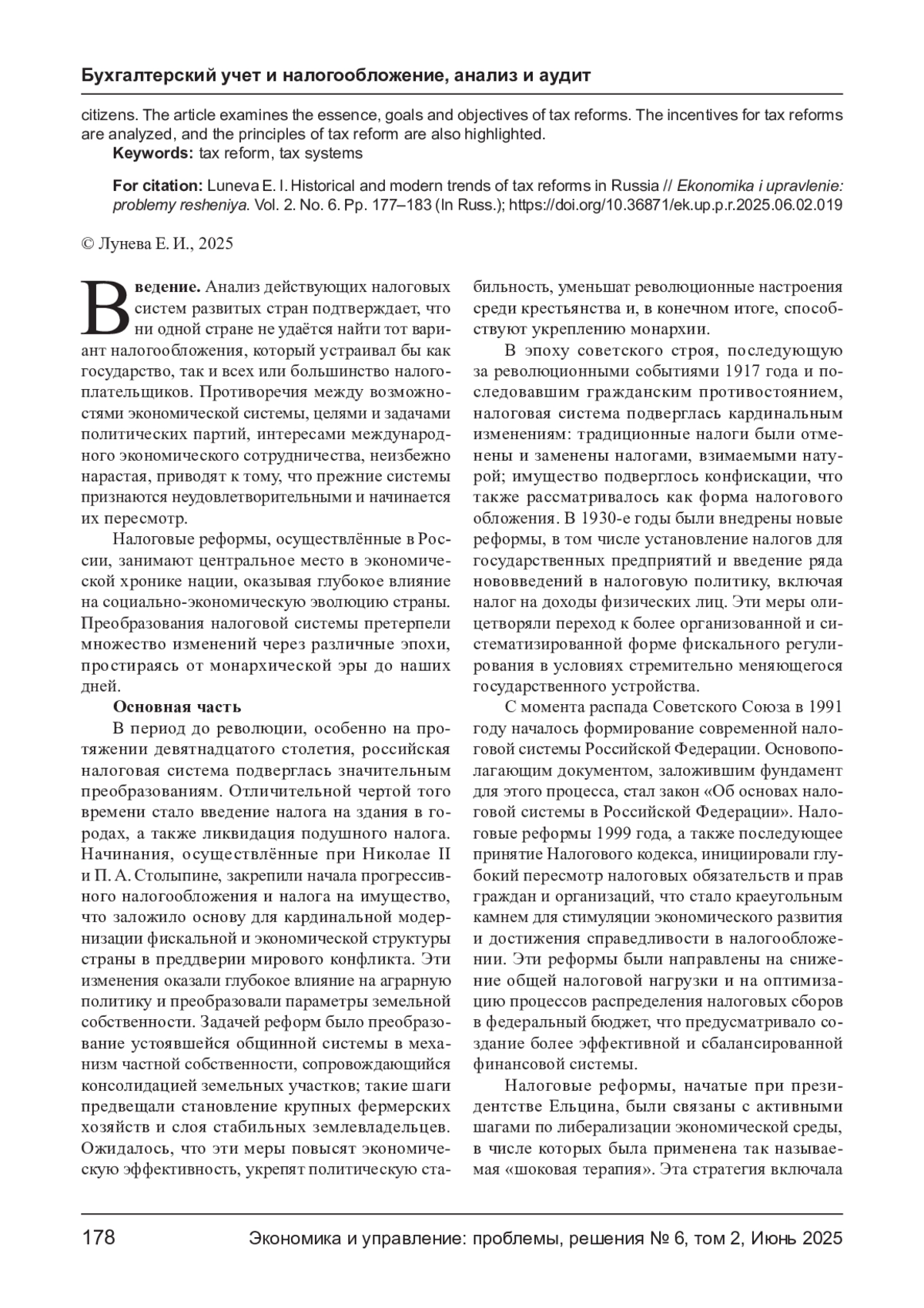 ЛУНЕВА Е. И. ИСТОРИЧЕСКИЕ И СОВРЕМЕННЫЕ ТЕНДЕНЦИИ НАЛОГОВЫХ РЕФОРМ В РОССИИ // ЭКОНОМИКА И УПРАВЛЕНИЕ: ПРОБЛЕМЫ, РЕШЕНИЯ. 2025. ТОМ 2 № 6
