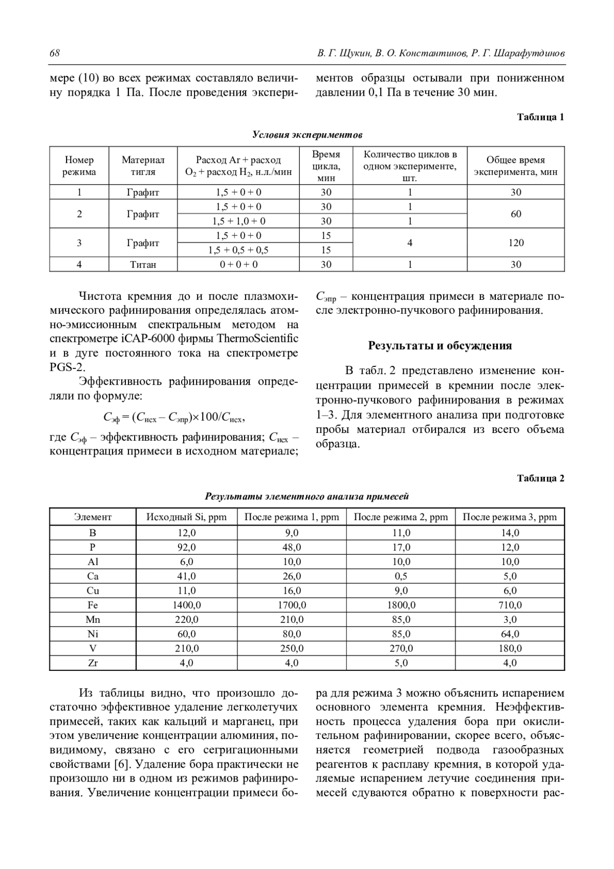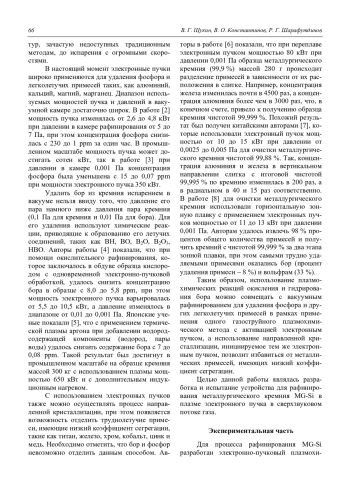 Щукин В. Г., Константинов В. О., Шарафутдинов Р. Г. Электронно-пучковое рафинирование металлургического кремния 65