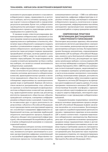 Статья: Современные практики легитимации дистанционного электронного голосования в контексте обеспечения электорального суверенитета Российской Федерации (2025)