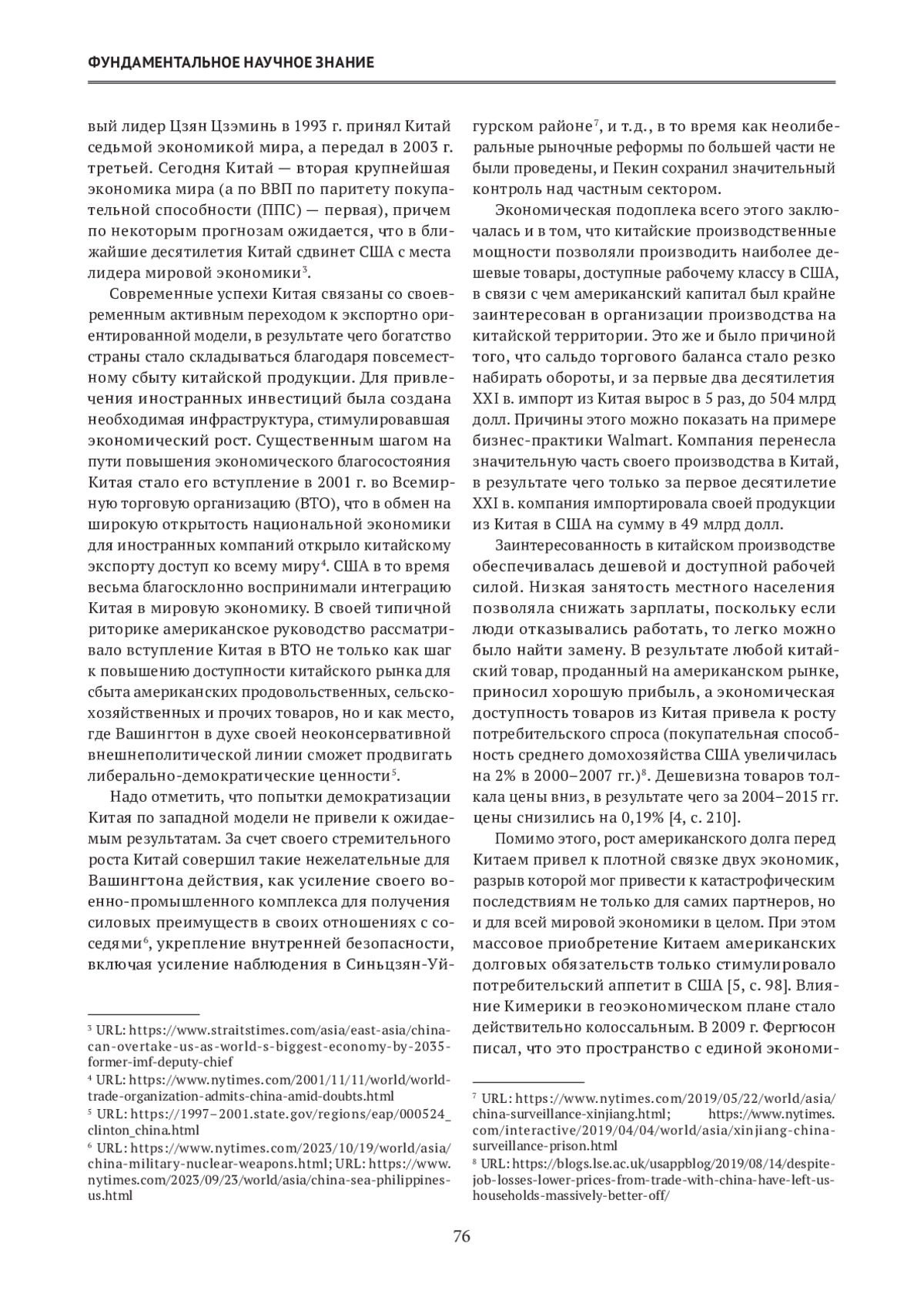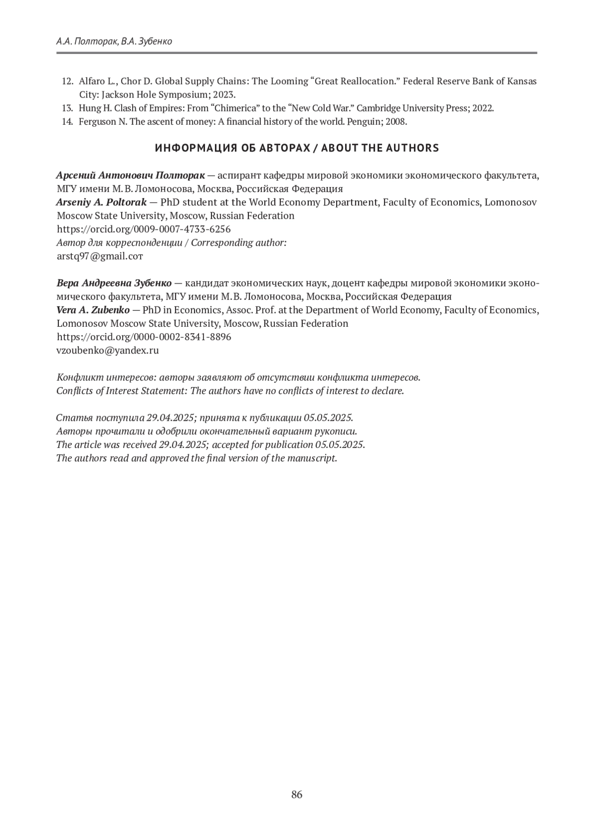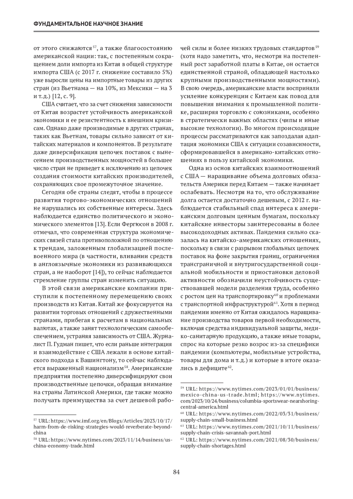 ПОЛТОРАК А. А., ЗУБЕНКО В. А. СОСТОЯНИЕ ВЗАИМОЗАВИСИМОСТИ ЭКОНОМИК КИТАЯ И США: ОТ КИМЕРИКИ К РАЗМЕЖЕВАНИЮ // ГУМАНИТАРНЫЕ НАУКИ. ВЕСТНИК ФИНАНСОВОГО УНИВЕРСИТЕТА. 2025. ТОМ 15, № 1