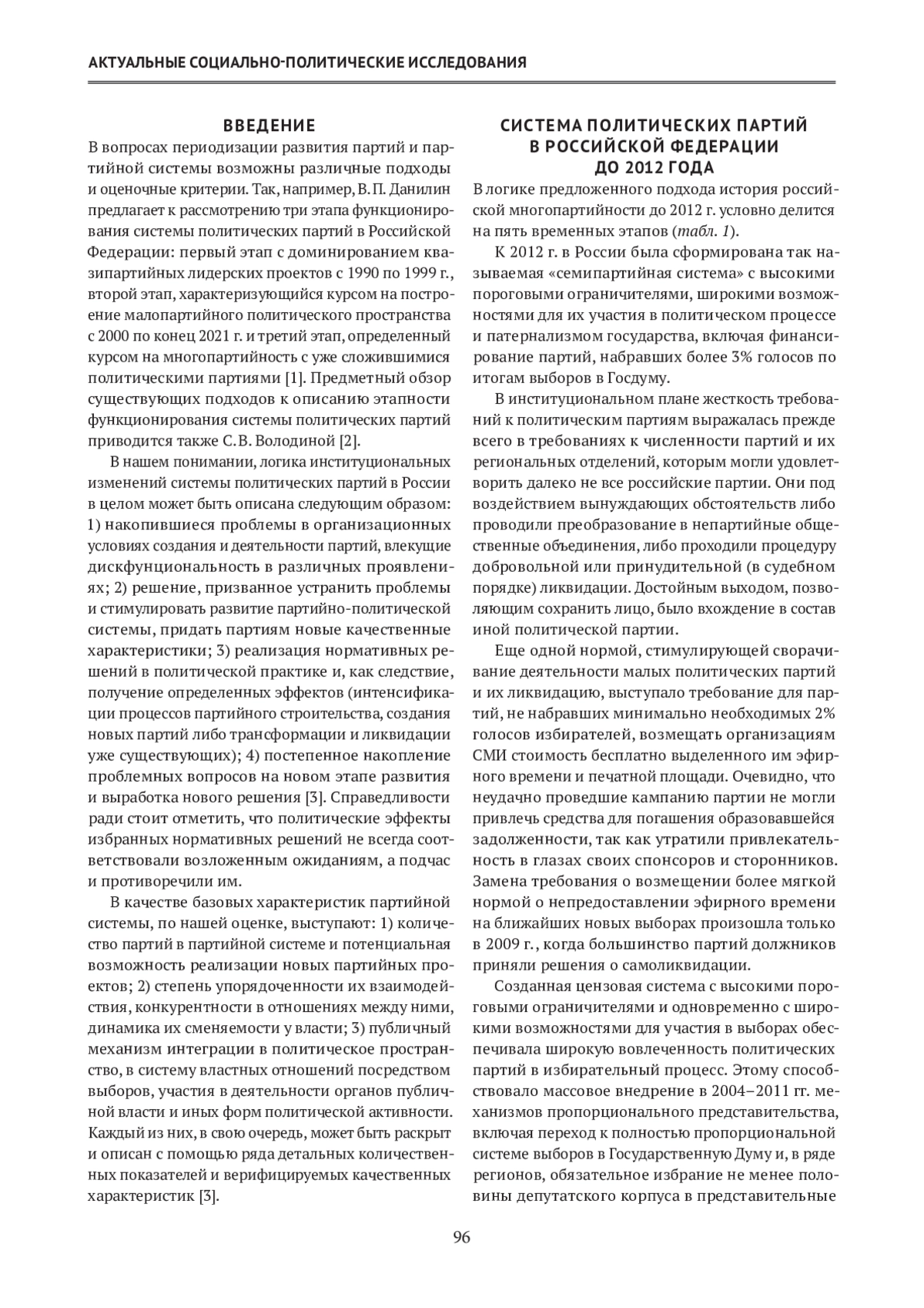 Цель исследования заключается в выработке подхода к периодизации развития партий и партийной системы Российской Федерации, основанной на предлагаемых базовых характеристиках партийной системы и описании этапов ее конфигурации в промежуток с 2012 по 2024 г.