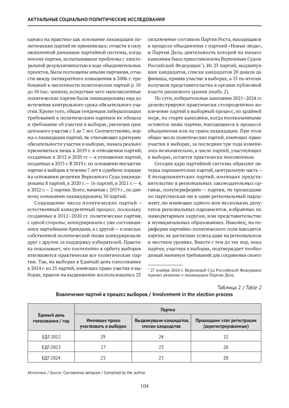 Статья: Институциональные параметры как фактор количественной динамики российской партийной системы в 2012–2024 годах (2025)