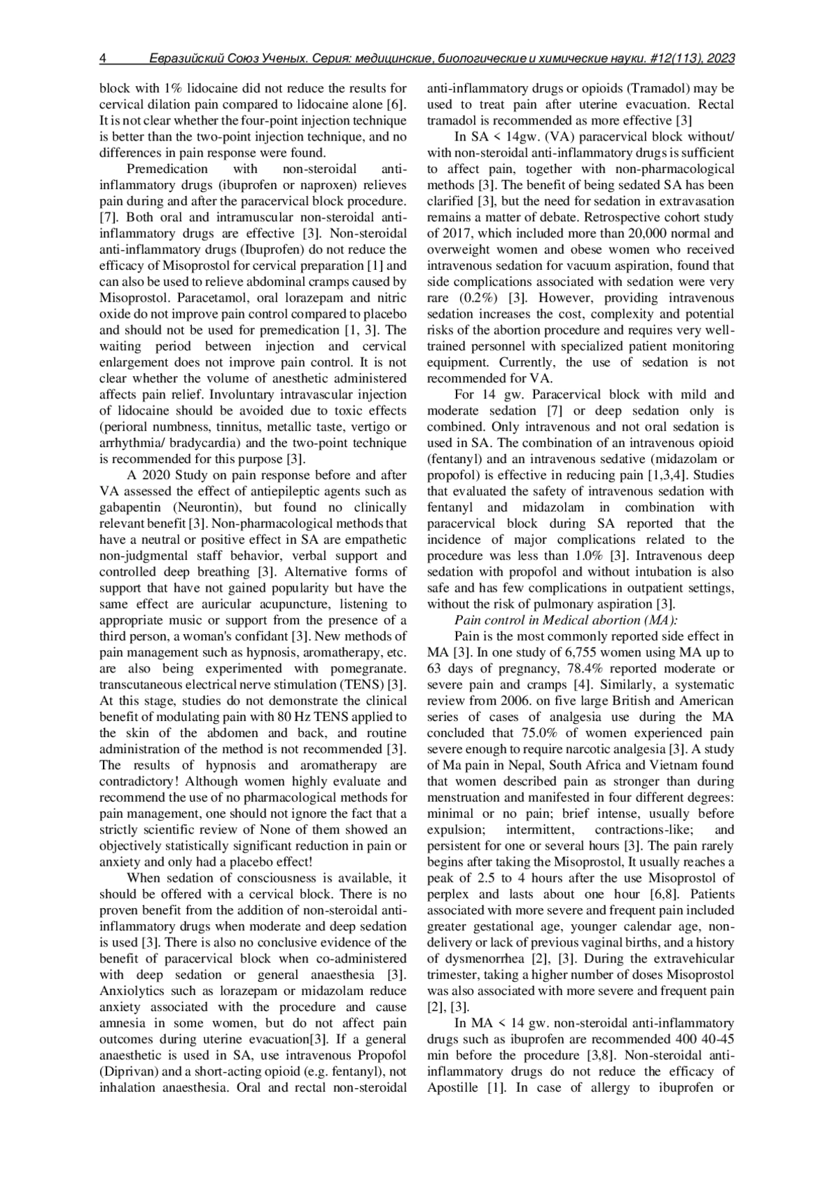 RADEVA S. ПРЕДОТВРАЩЕНИЕ БОЛИ ПРИ МЕДИКАМЕНТОЗНОМ АБОРТЕ — СИСТЕМАТИЧЕСКИЙ ОБЗОР БАЗЫ ДАННЫХ // ЕВРАЗИЙСКИЙ СОЮЗ УЧЕНЫХ. СЕРИЯ: МЕДИЦИНСКИЕ, БИОЛОГИЧЕСКИЕ И ХИМИЧЕСКИЕ НАУКИ. 2025. №12 (113)