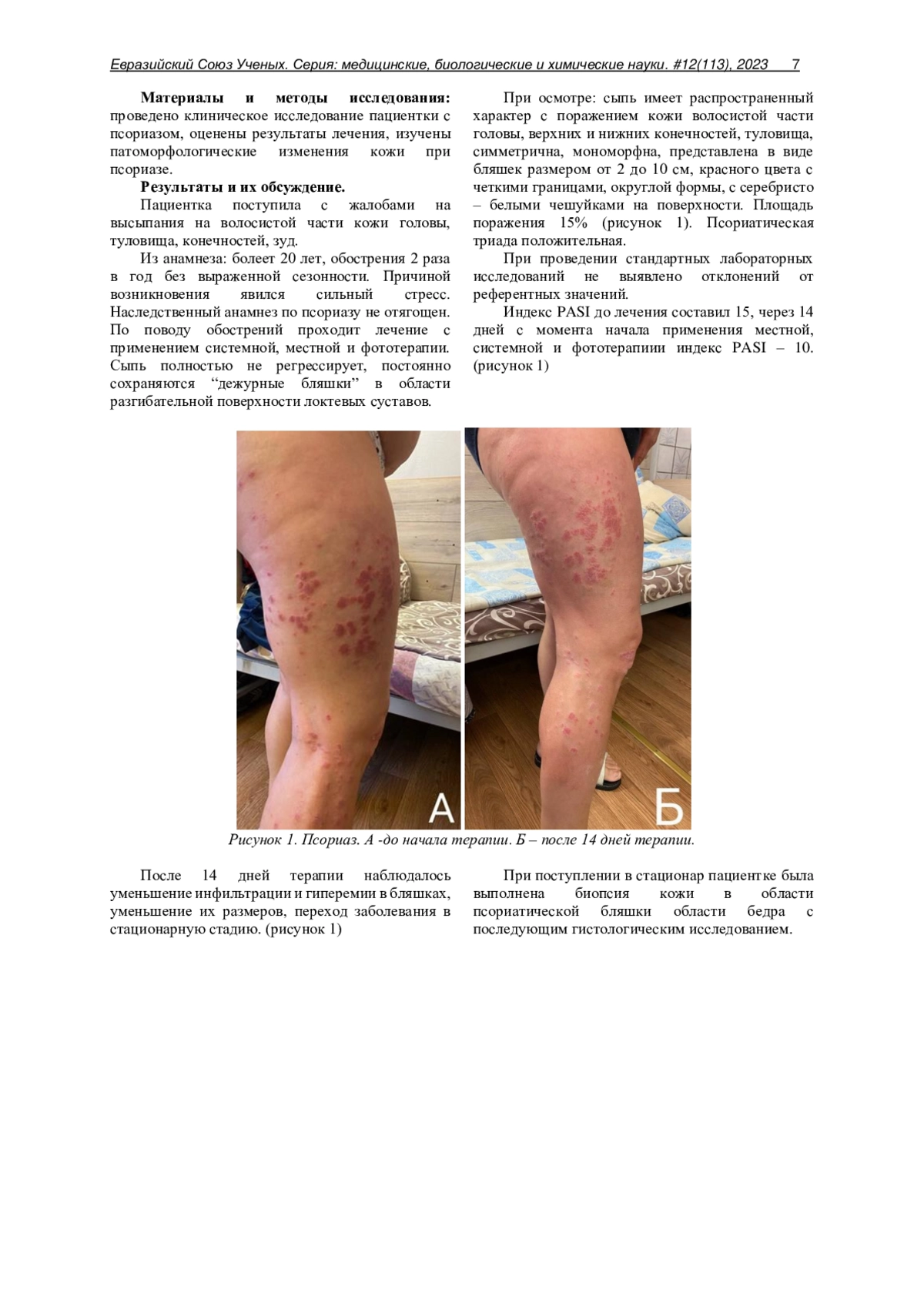 Статья: ПАТОМОРФОЛОГИЧЕСКИЕ ИЗМЕНЕНИЯ КОЖНЫХ ПОКРОВОВ ПРИ ВУЛЬГАРНОМ ПСОРИАЗЕ. КЛИНИЧЕСКИЙ СЛУЧАЙ (2025)