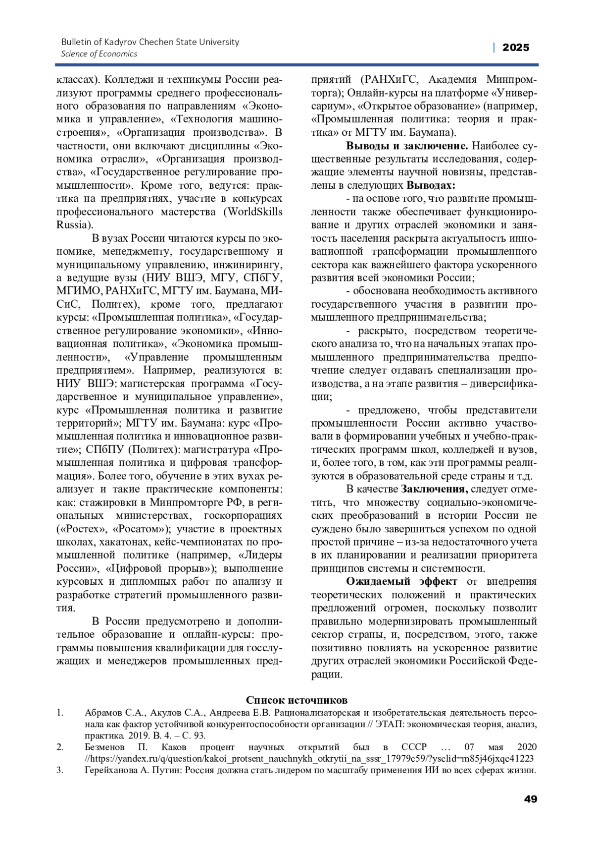 3. Герейханова А. Путин: Россия должна стать лидером по масштабу применения ИИ во всех сферах жизни. 11.12.2024 // https://rg.ru/2024/12/11/saga-o-forsajte.html?ysclid=m85jlu4wd8977702774.