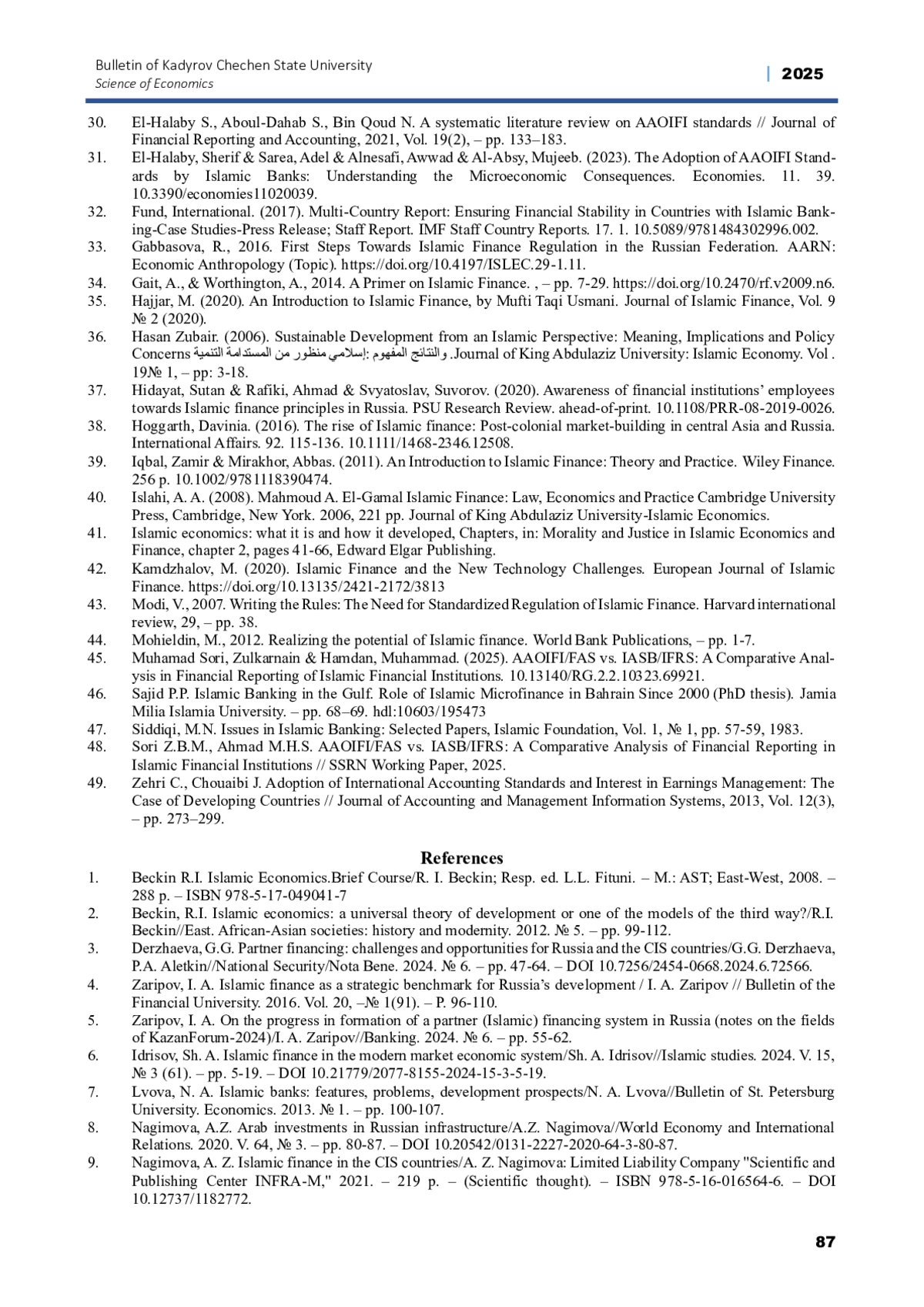 30. El-Halaby S., Aboul-Dahab S., Bin Qoud N. A systematic literature review on AAOIFI standards // Journal of Financial Reporting and Accounting, 2021, Vol. 19(2), - pp. 133-183. EDN: YPZTIM