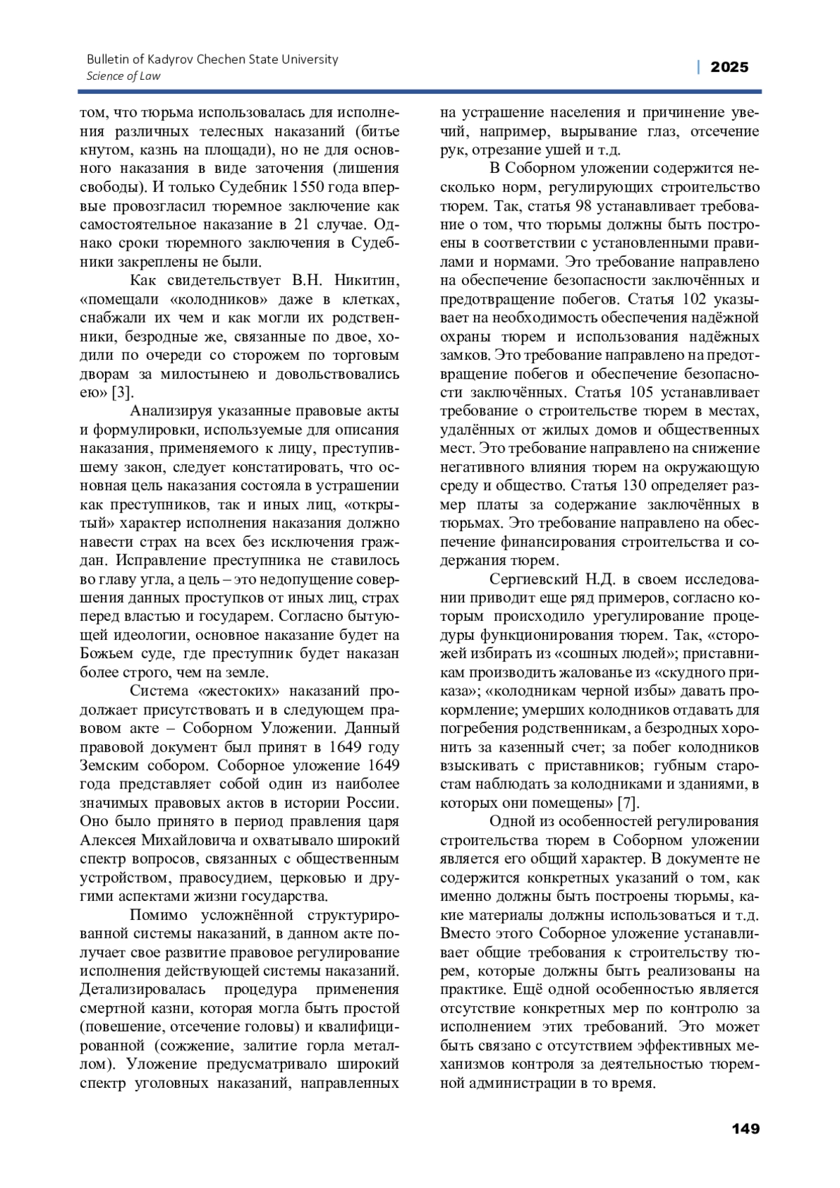 7. Сергиевский Н.Д. Наказание в русском праве XVII века. СПб., 1887. С. 177 [Электронный ресурс]. URL: http://elib.shpl.ru/nodes/8779 (дата обращения 01.02.2025).
