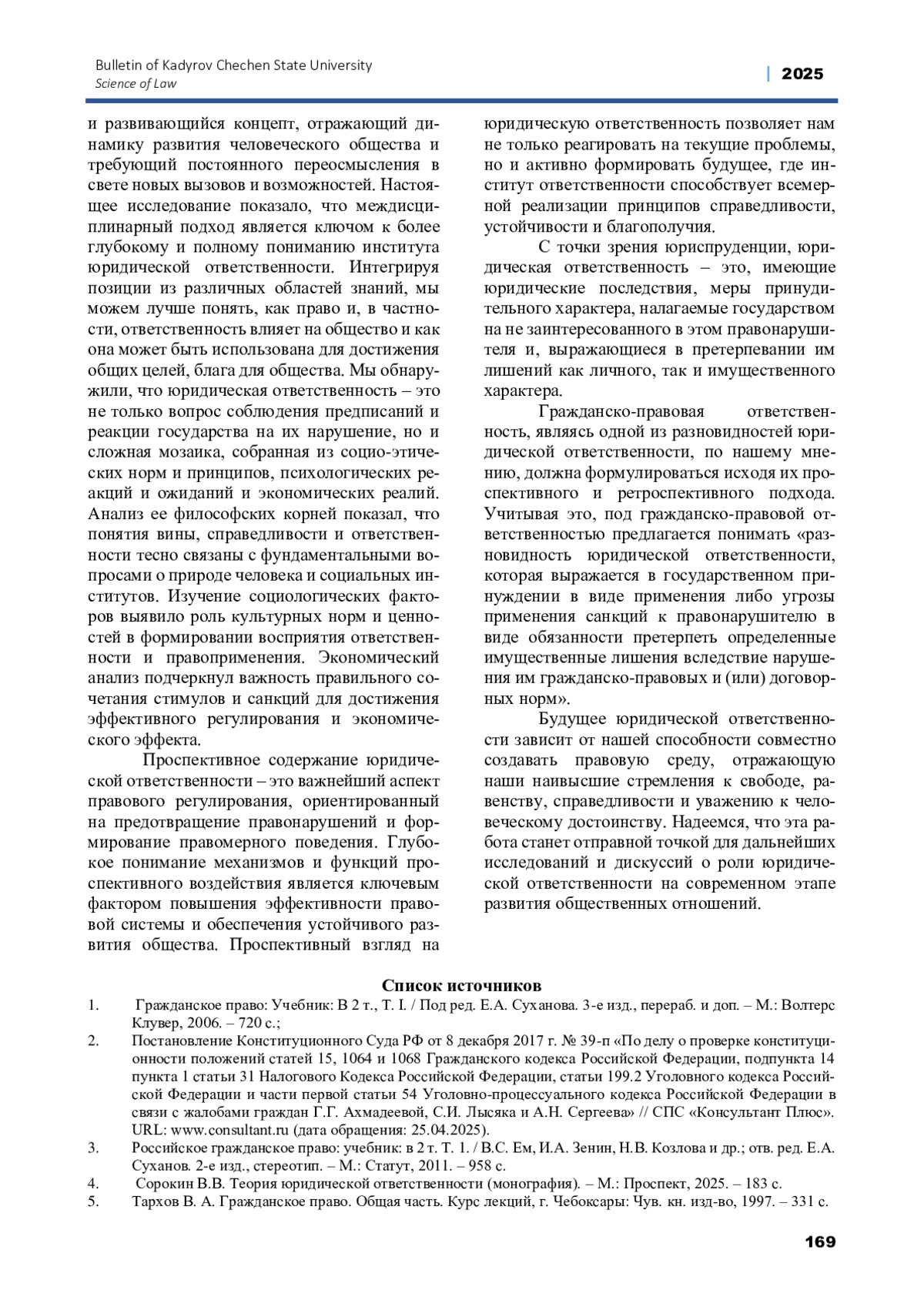 4. Сорокин В.В. Теория юридической ответственности (монография). - М.: Проспект, 2025. - 183 с.