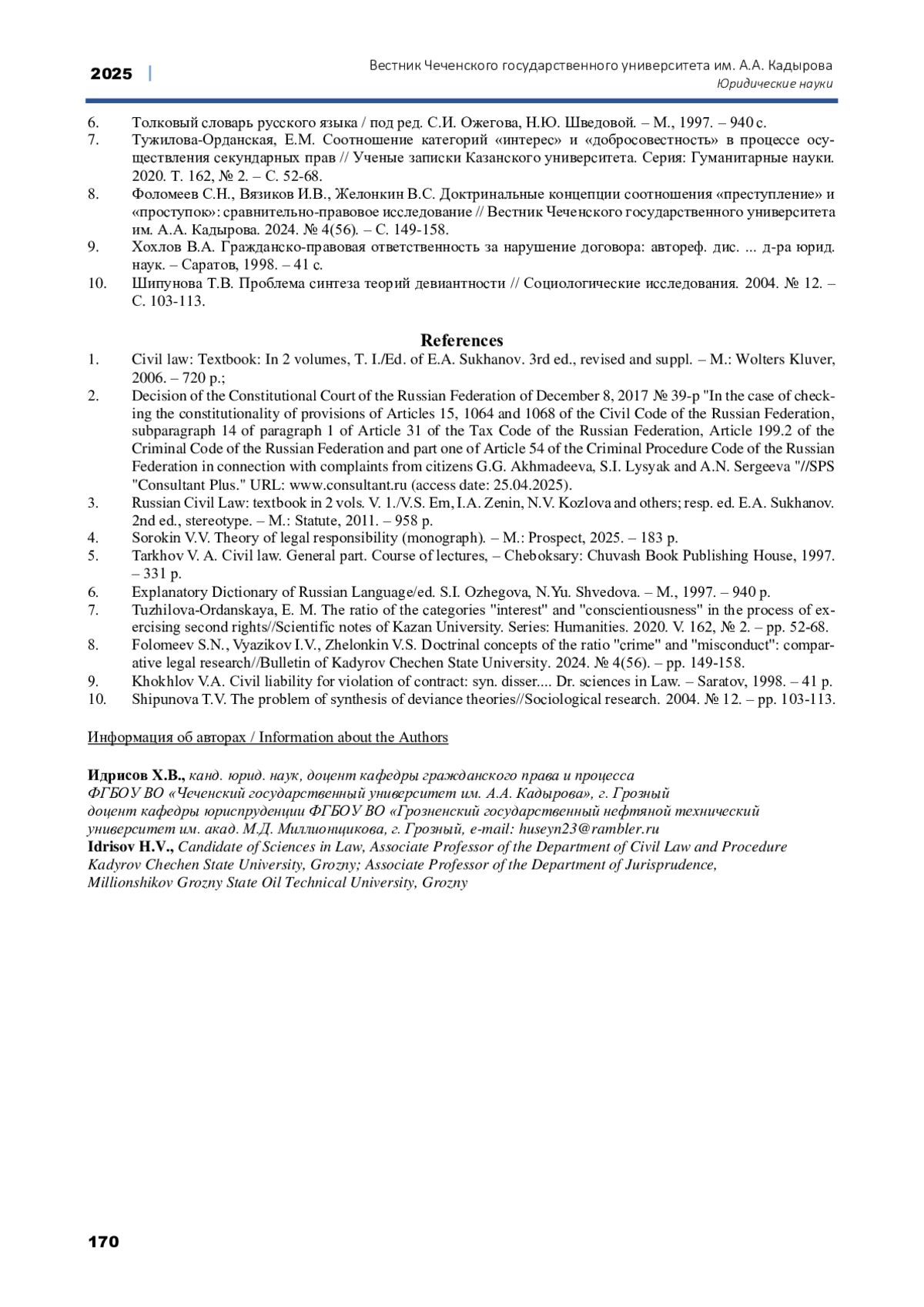 8. Фоломеев С.Н., Вязиков И.В., Желонкин В.С. Доктринальные концепции соотношения “преступление” и “проступок”: сравнительно-правовое исследование // Вестник Чеченского государственного университета им. А.А. Кадырова. 2024. № 4(56). - С. 149-158. EDN: BSKJTB