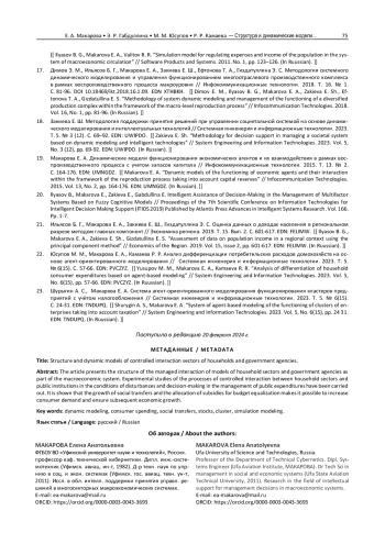 МАКАРОВА Е. А., ГАБДУЛЛИНА Э. Р., ЮСУПОВ М. М., КАМАЕВА Р. Р. СТРУКТУРА И ДИНАМИЧЕСКИЕ МОДЕЛИ УПРАВЛЯЕМОГО ВЗАИМОДЕЙСТВИЯ СЕКТОРОВ ДОМОХОЗЯЙСТВ И ГОСУДАРСТВЕННЫХ УЧРЕЖДЕНИЙ // СИСТЕМНАЯ ИНЖЕНЕРИЯ И ИНФОРМАЦИОННЫЕ ТЕХНОЛОГИИ. 2024. ТОМ 6, № 1(16)