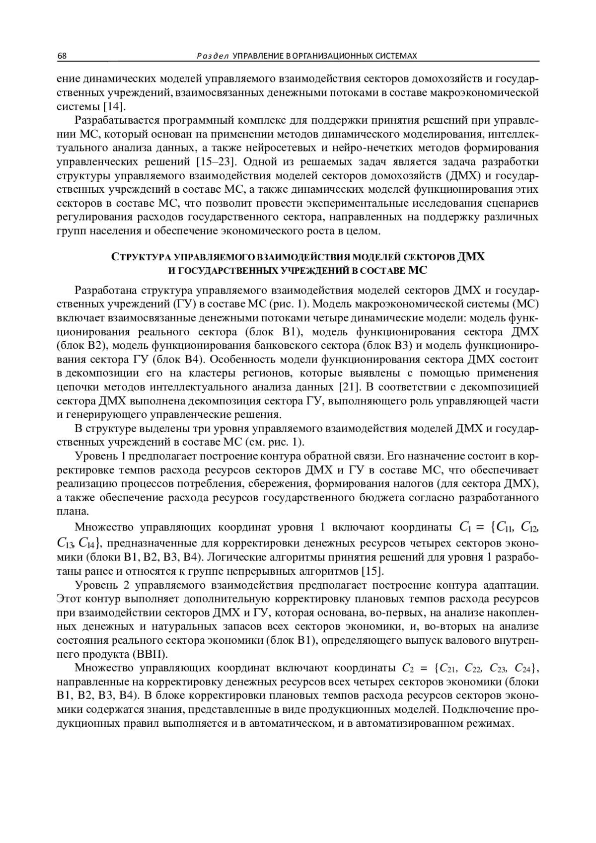 Статья: СТРУКТУРА И ДИНАМИЧЕСКИЕ МОДЕЛИ УПРАВЛЯЕМОГО ВЗАИМОДЕЙСТВИЯ СЕКТОРОВ ДОМОХОЗЯЙСТВ И ГОСУДАРСТВЕННЫХ УЧРЕЖДЕНИЙ (2024)