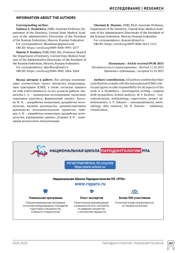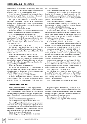 17. Джураева ШФ, Воробьев МВ, Мосеева МВ, Тропина АА. Распространенность зубочелюстных аномалий у детей и подростков и факторы, влияющие на их формирование. Научное обозрение. Медицинские науки. 2022;(6):70-75. Режим доступа: item.asp?id=50107127.