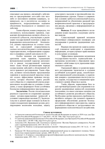 11. Смирнов А. А. Проблемы формирования системы правового обеспечения информационно-психологической безопасности // Труды Института государства и права РАН. 2022. №5. URL: https://cyberleninka.ru/article/n/problemy-formirovaniya-sistemy-pravovogo-obespecheniya-informatsionno-psihologicheskoy-bezopasnosti.