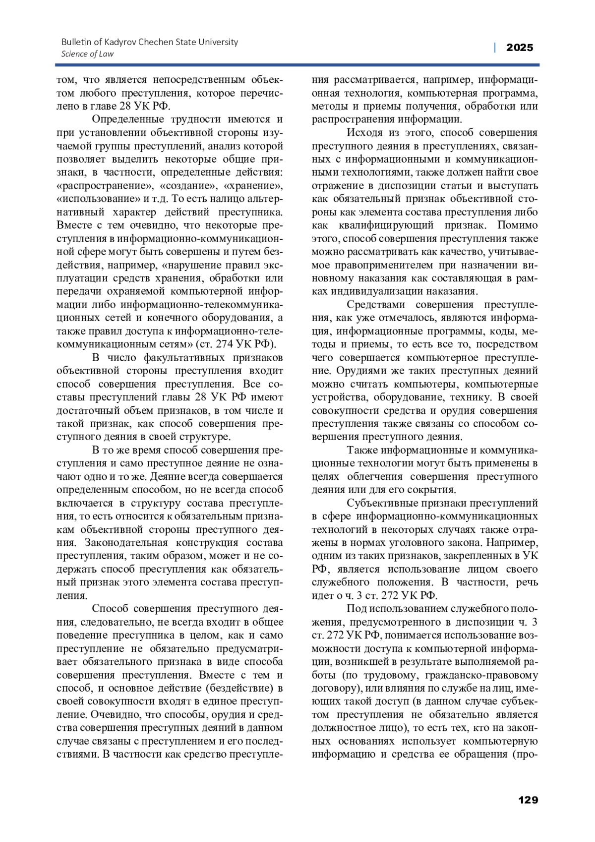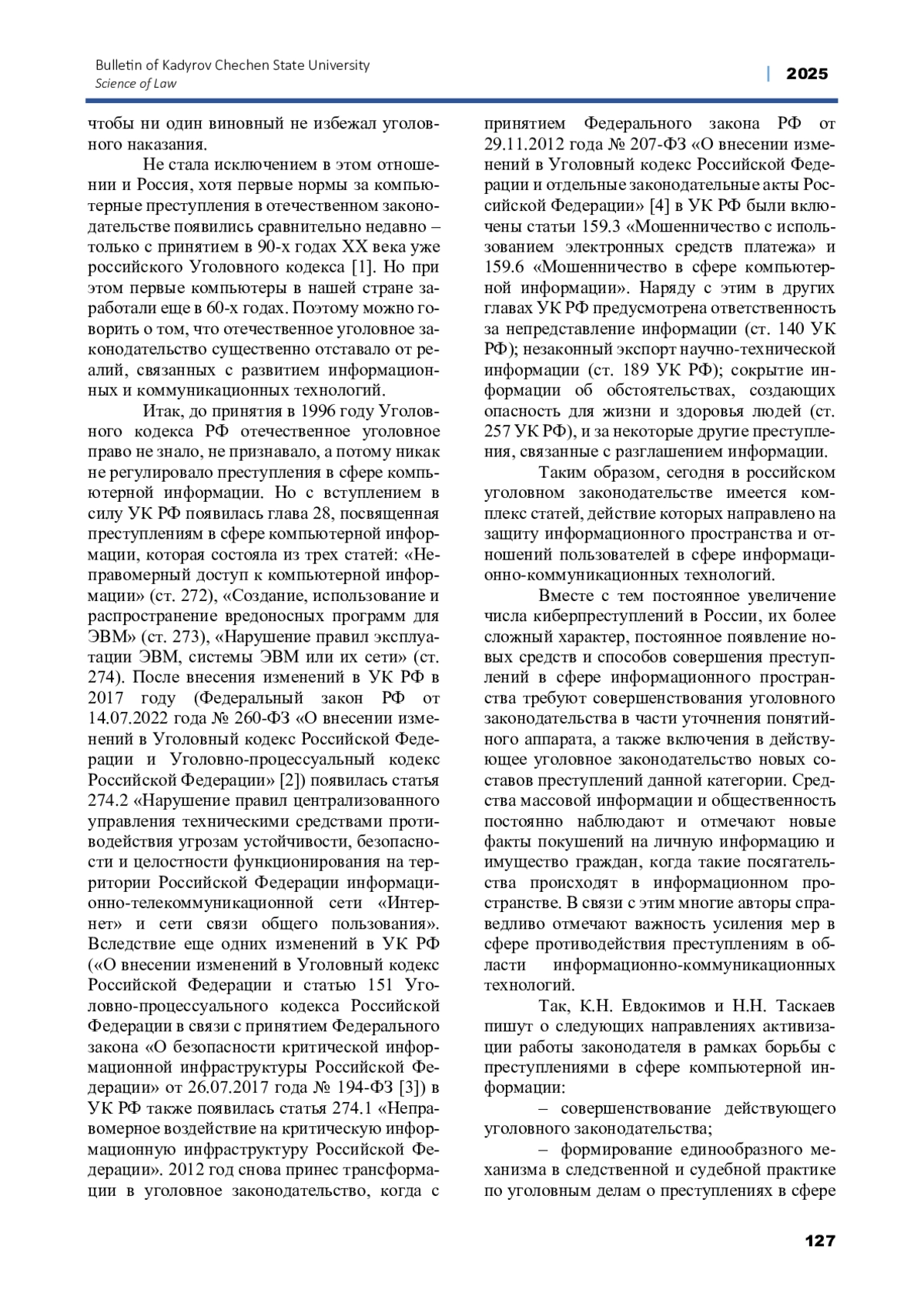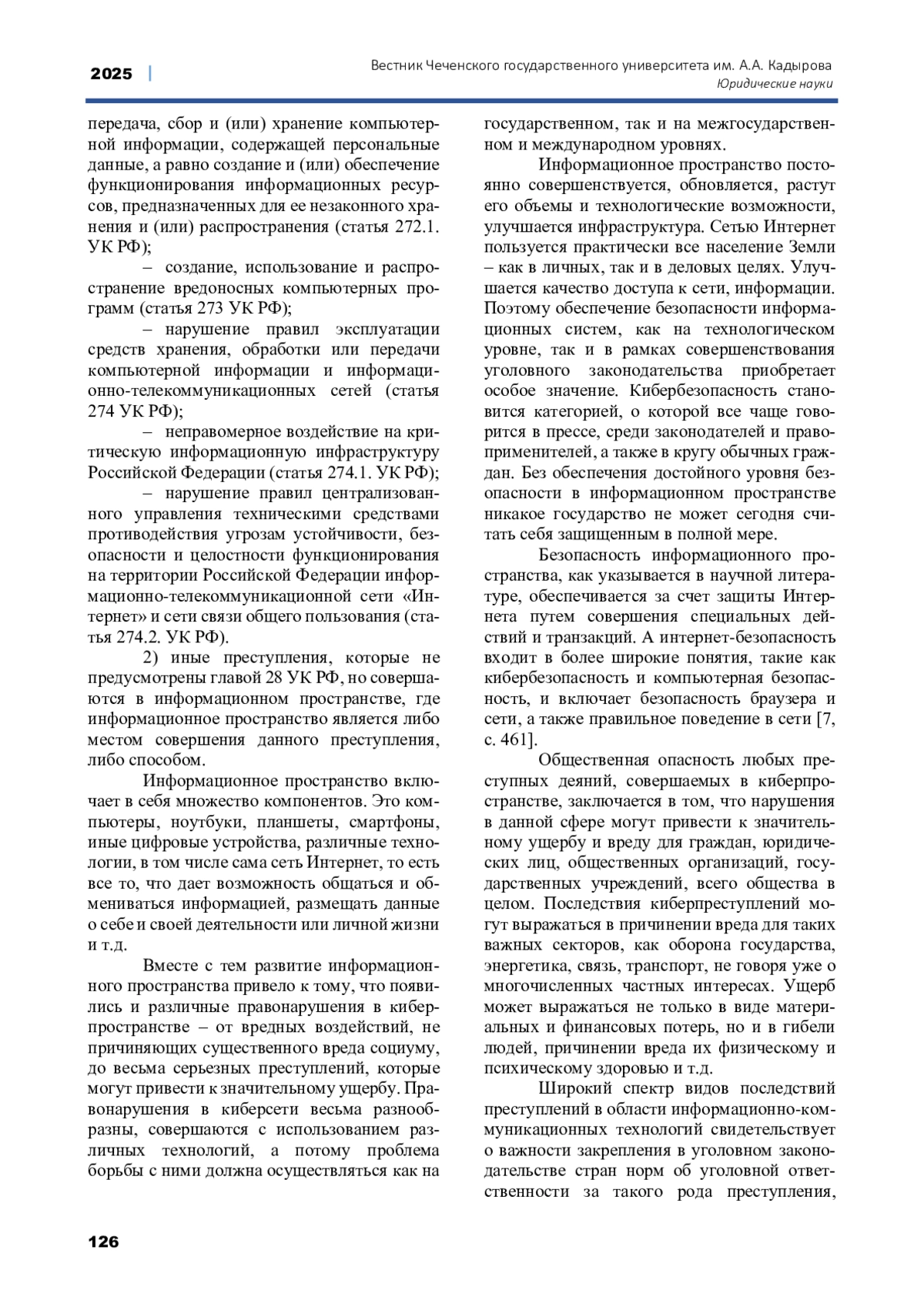 АХЪЯДОВ Э. С. ЗАЩИТА ИНФОРМАЦИОННОГО ПРОСТРАНСТВА МЕРАМИ УГОЛОВНО-ПРАВОВОГО ХАРАКТЕРА // ВЕСТНИК ЧЕЧЕНСКОГО ГОСУДАРСТВЕННОГО УНИВЕРСИТЕТА ИМ. А. А. КАДЫРОВА. 2025. № 1 (57)