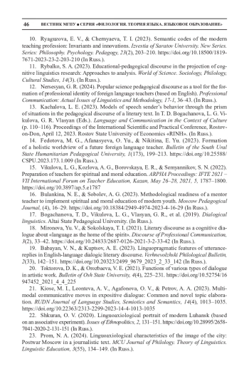 11. Рыбалко, С. А. (2023). Учебно-педагогический дискурс в проекции исследований когнитивной лингвистики: подходы к анализу. Мир науки. Социология, филология, культурология, 14(3). EDN: QZVSDJ