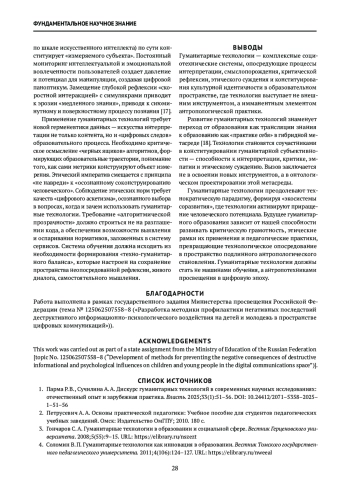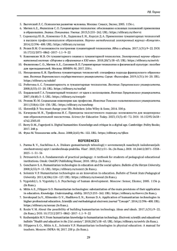 6. Митин А. Е., Филиппов С. О. Гуманитарные технологии: обоснование основных положений применения в образовании. Знание. Понимание. Умение. 2013;3:255-262. URL: https://elibrary.ru/rbovvz