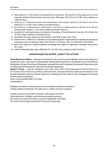 13. Бордовский Г. А. Гуманитарный технолог: от идеи к воплощению. Вестник Герценовского университета. 2007;10(48):3-5. URL: https://elibrary.ru/nwzpdv