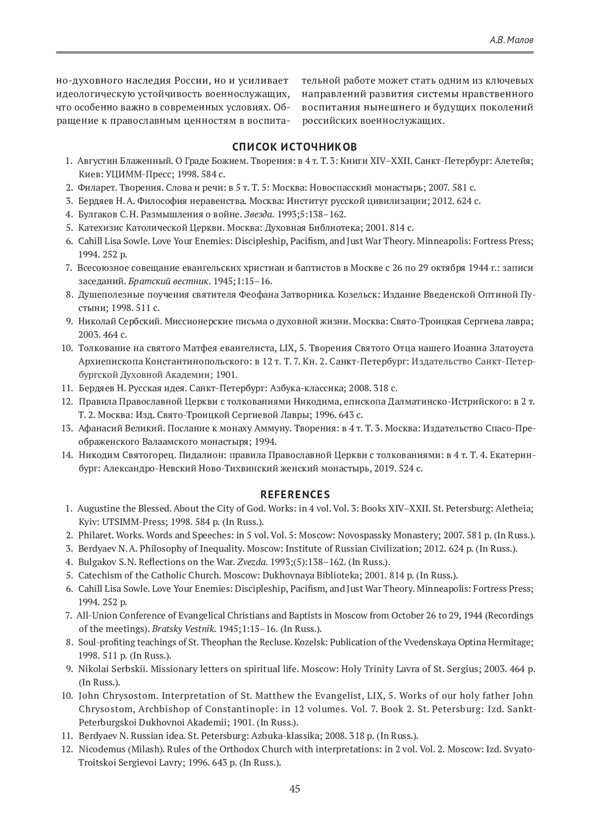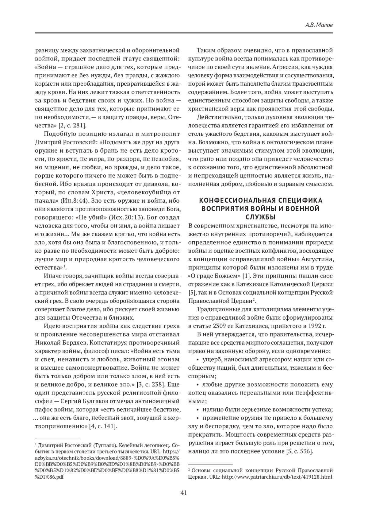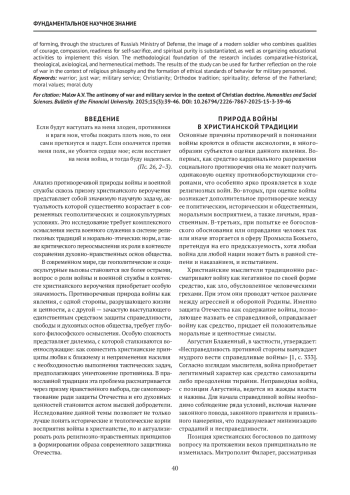 МАЛОВ А. В. АНТИНОМИЯ ВОЙНЫ И ВОЕННОЙ СЛУЖБЫ В КОНТЕКСТЕ ХРИСТИАНСКОГО ВЕРОУЧЕНИЯ // ГУМАНИТАРНЫЕ НАУКИ. ВЕСТНИК ФИНАНСОВОГО УНИВЕРСИТЕТА. 2025. ТОМ 15, № 3