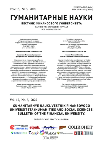 Журнал: ГУМАНИТАРНЫЕ НАУКИ. ВЕСТНИК ФИНАНСОВОГО УНИВЕРСИТЕТА
